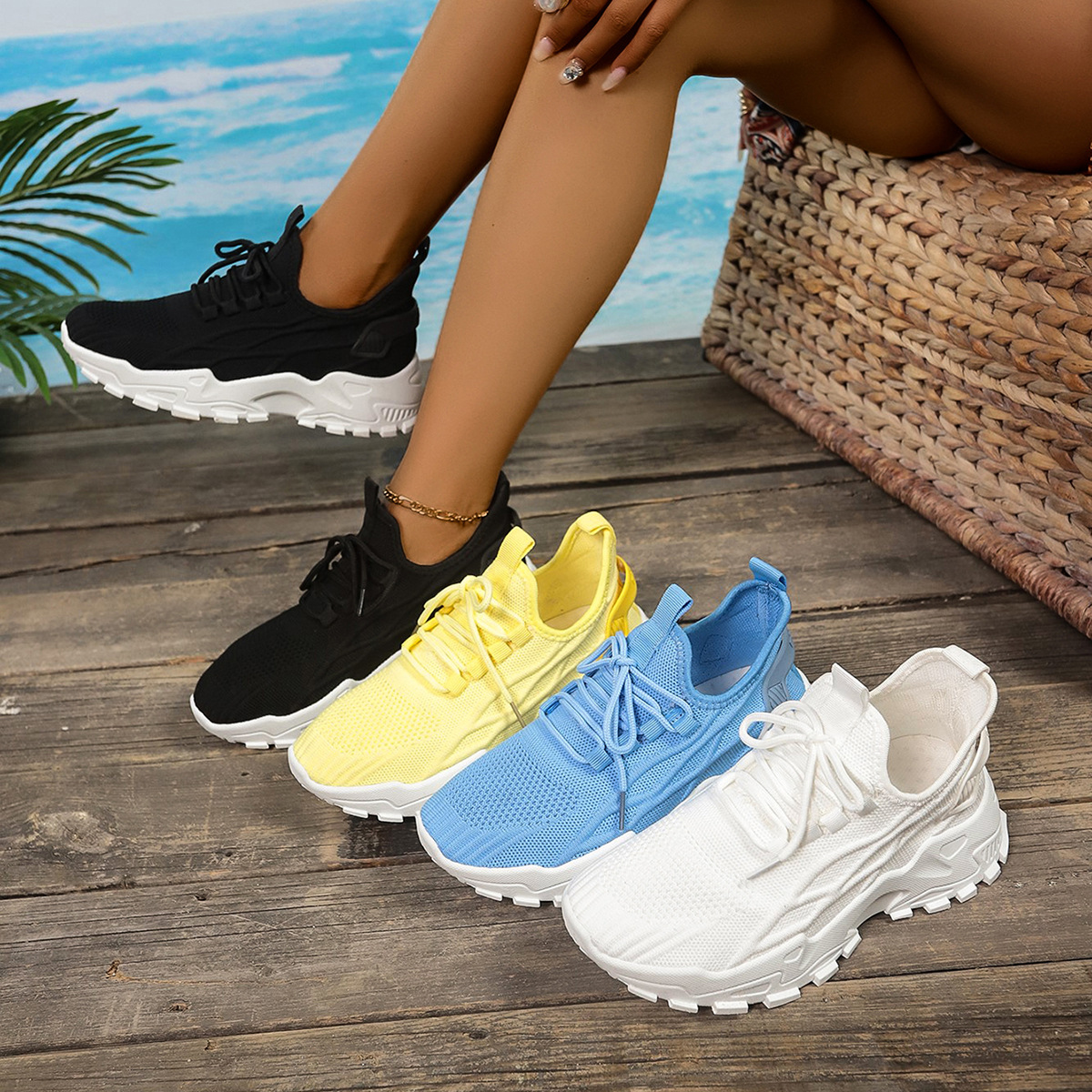 크로스보더 스포츠 레저 여성 신발, 플라이니트 메쉬 슈즈, 얇은 한국식 통기성 메쉬 슈즈, 여성용 아마존 편안하고 통기성이 좋으며 가벼운 신발스토어 가기