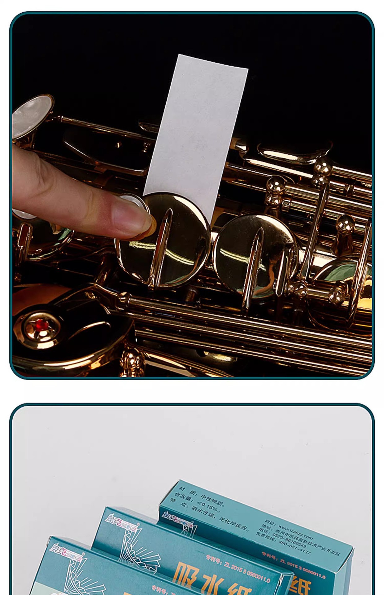 색소폰 가죽 패드 흡수성 종이 긴 튜브 단일 및 이중 클라리넷 키 패드 피스톤 관리 및 유지 보수 먼지 제거 악기 액세서리
