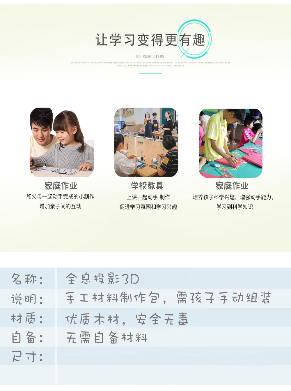 3D 홀로그램 프로젝터 유치원 초등학생 수제 DIY 기술 소규모 생산 과학 실험 장비 교육 보조 장치