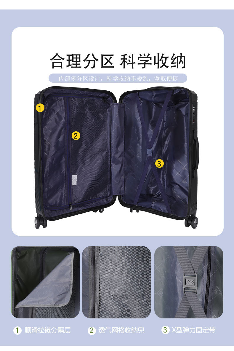 국경 간 간단한 경량 트롤리 케이스 pp 3 피스 범용 휠 가방 레저 여행 대용량 가방