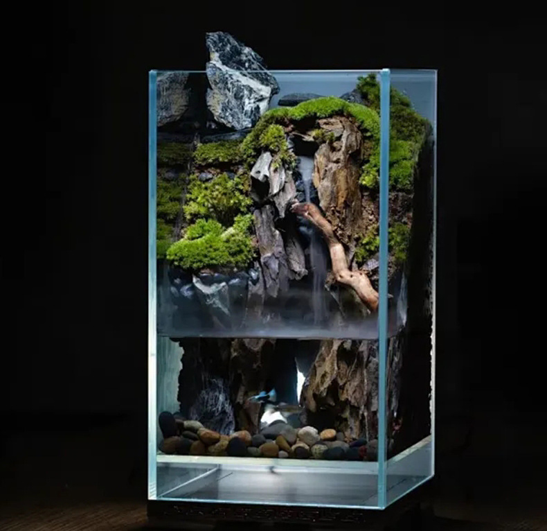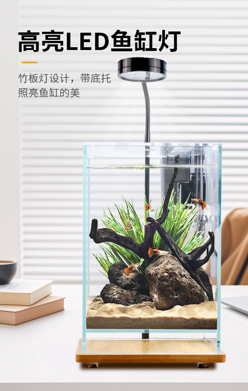 도매 초백색 서스펜션 탱크 마이크로 풍경 생태 탱크 이끼 탱크 잔디 탱크 대나무 보드 램프 데스크탑 크리 에이 티브 탱크 작은 물고기 탱크