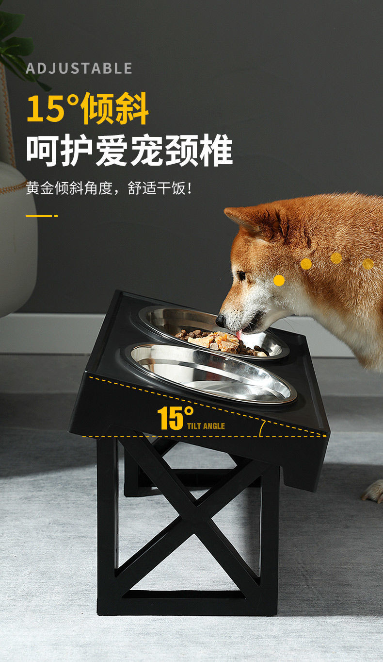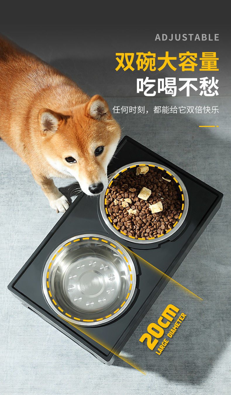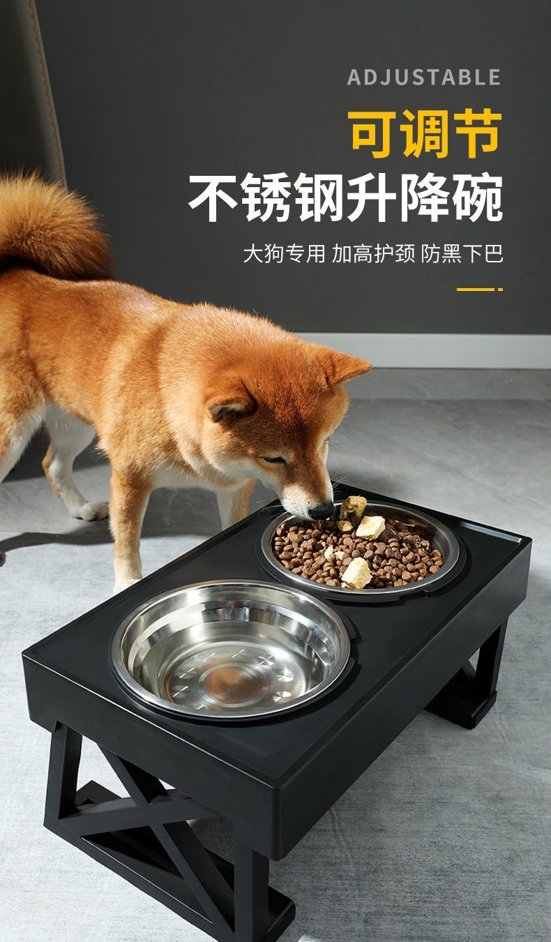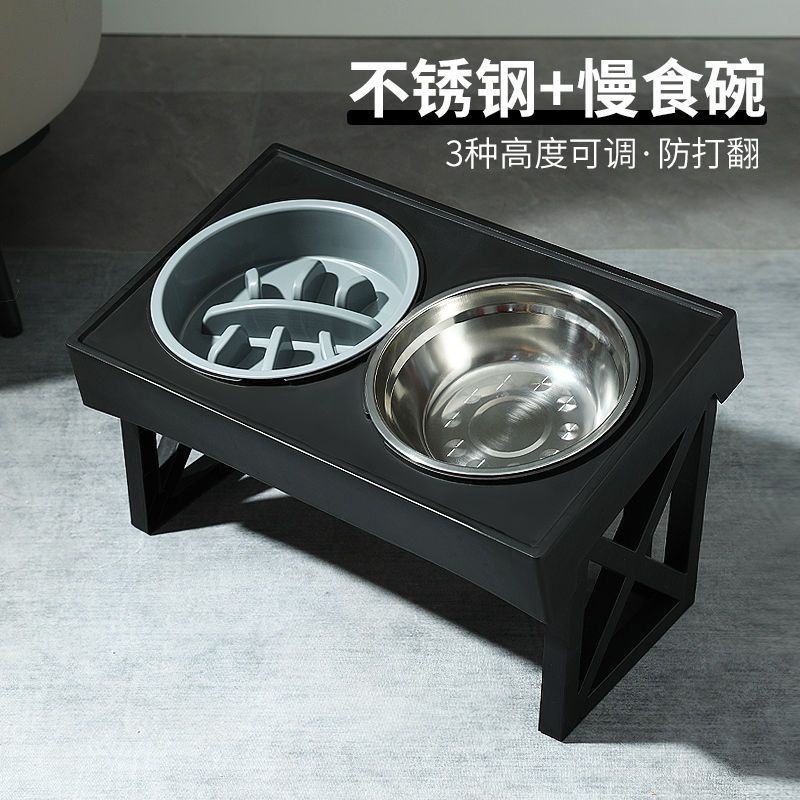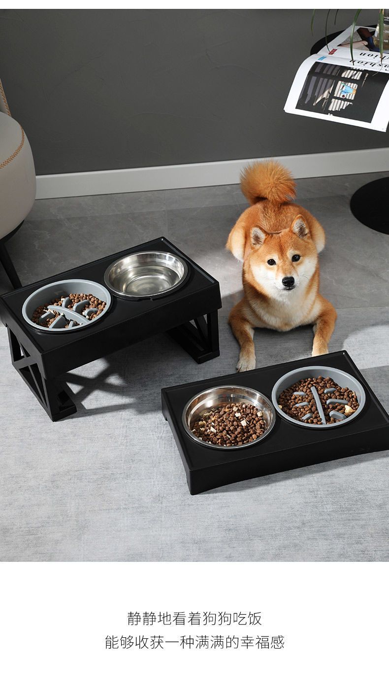 • 대형견을 위한 조절식 리프팅 그릇(스테인리스 그릇 + 슬로우 푸드 그릇)