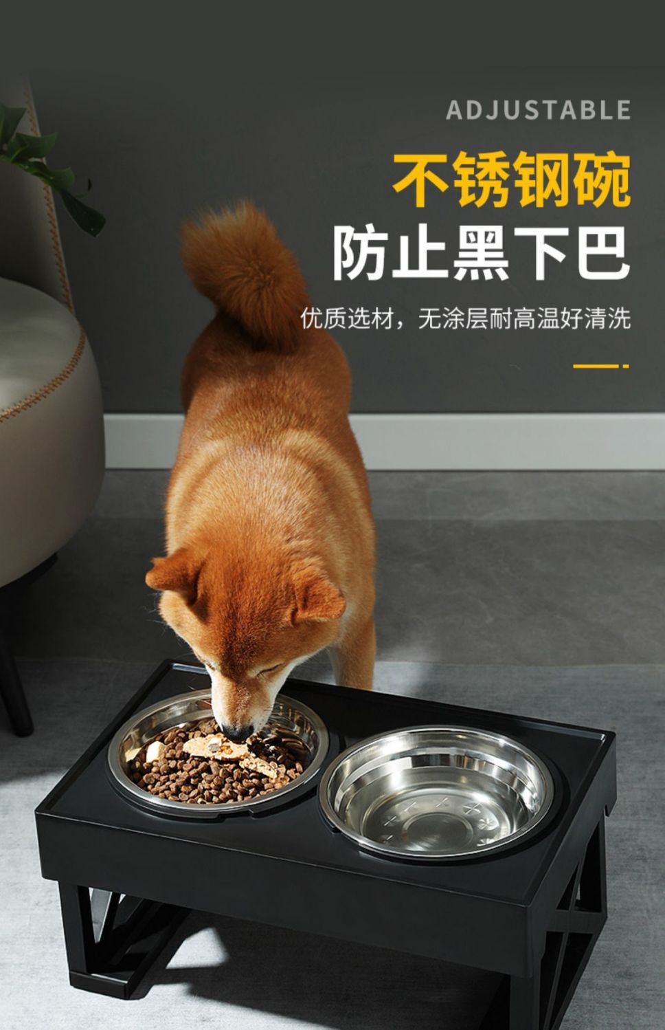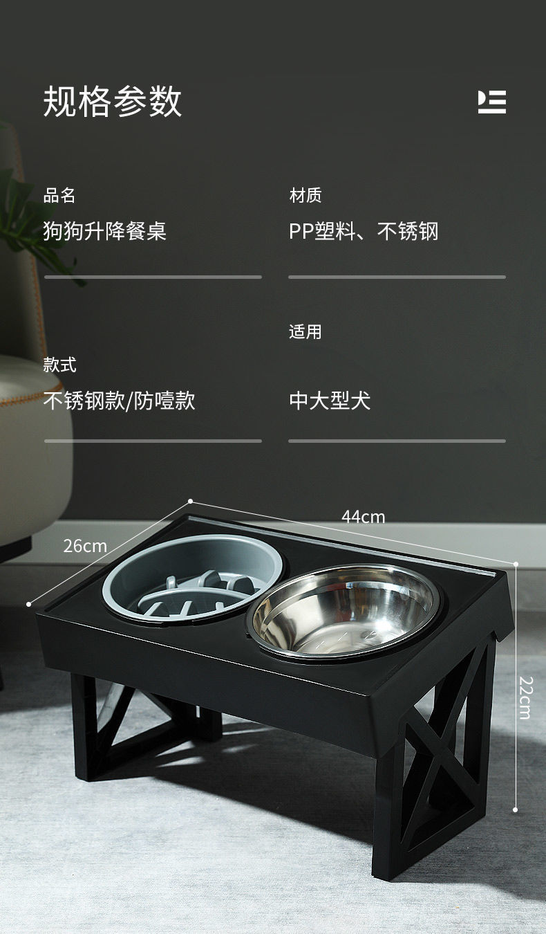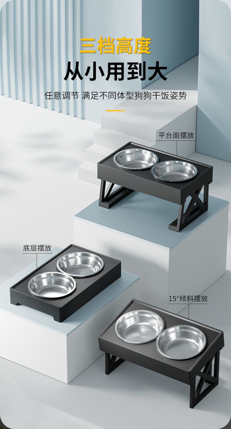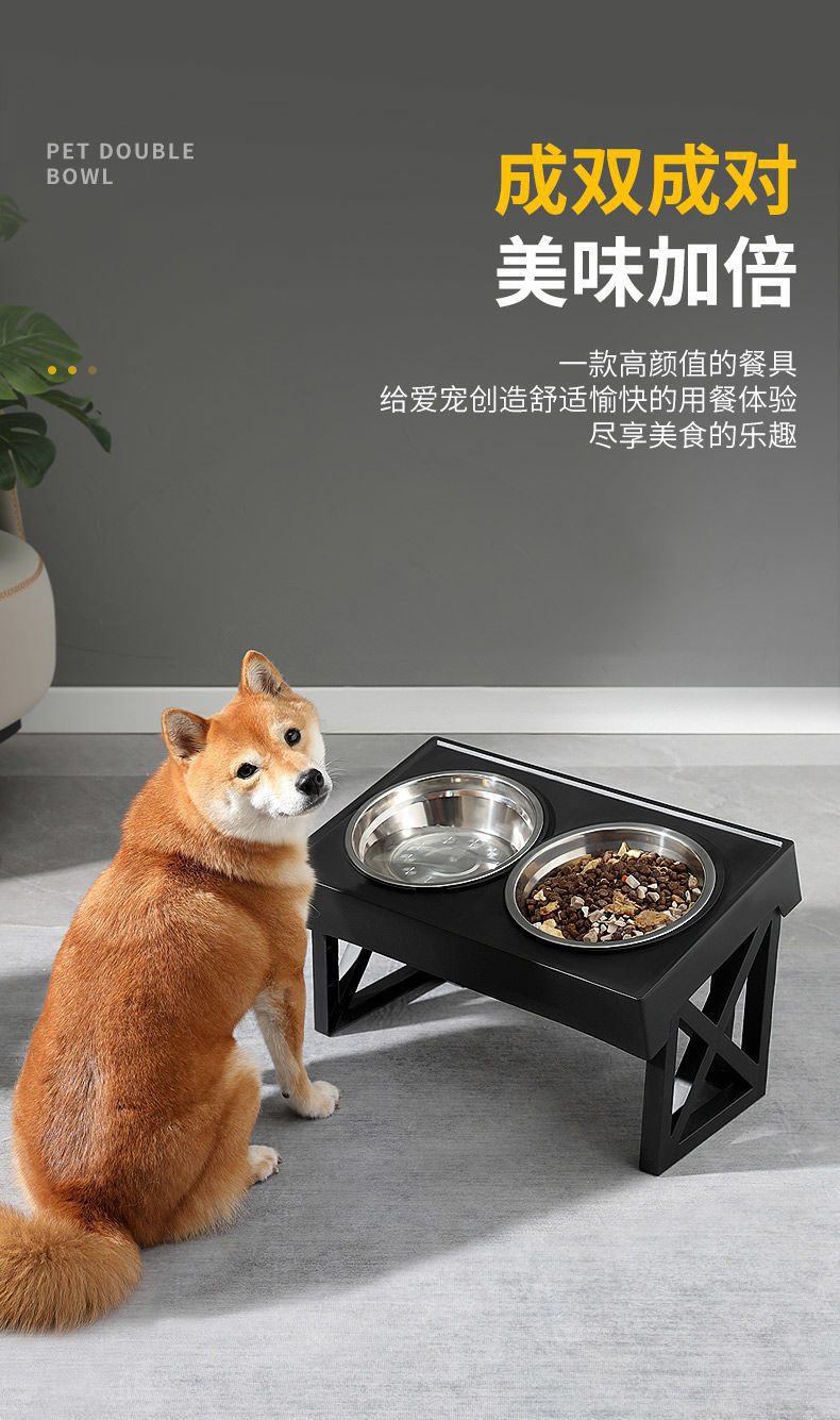 • 대형견을 위한 조절식 리프팅 그릇(스테인리스 그릇 + 슬로우 푸드 그릇)