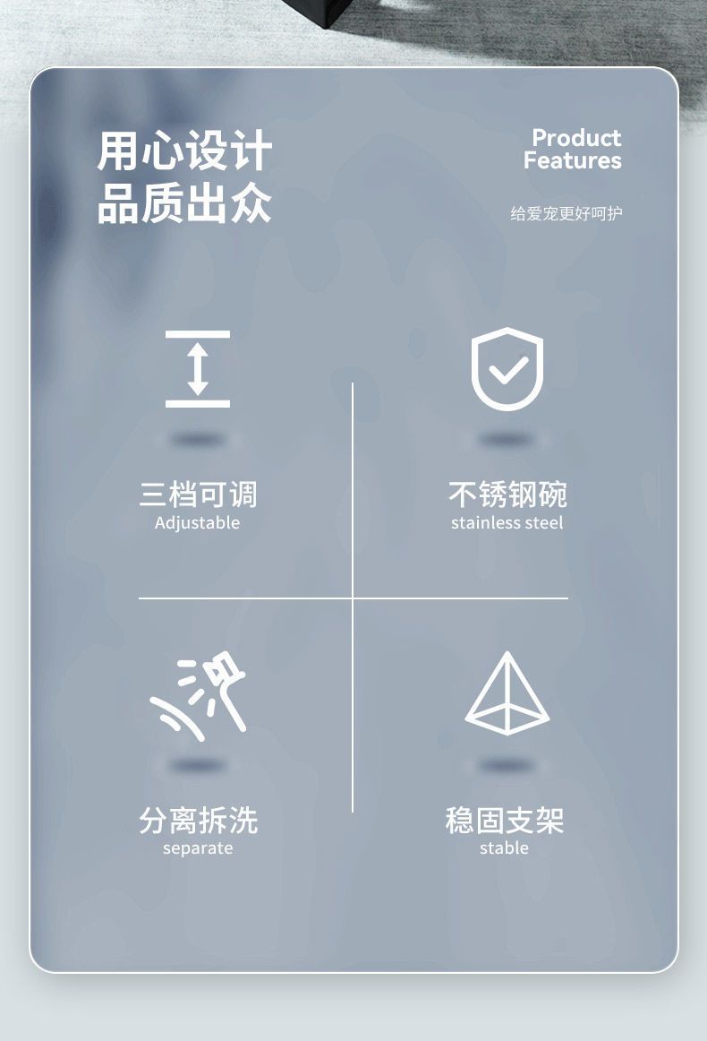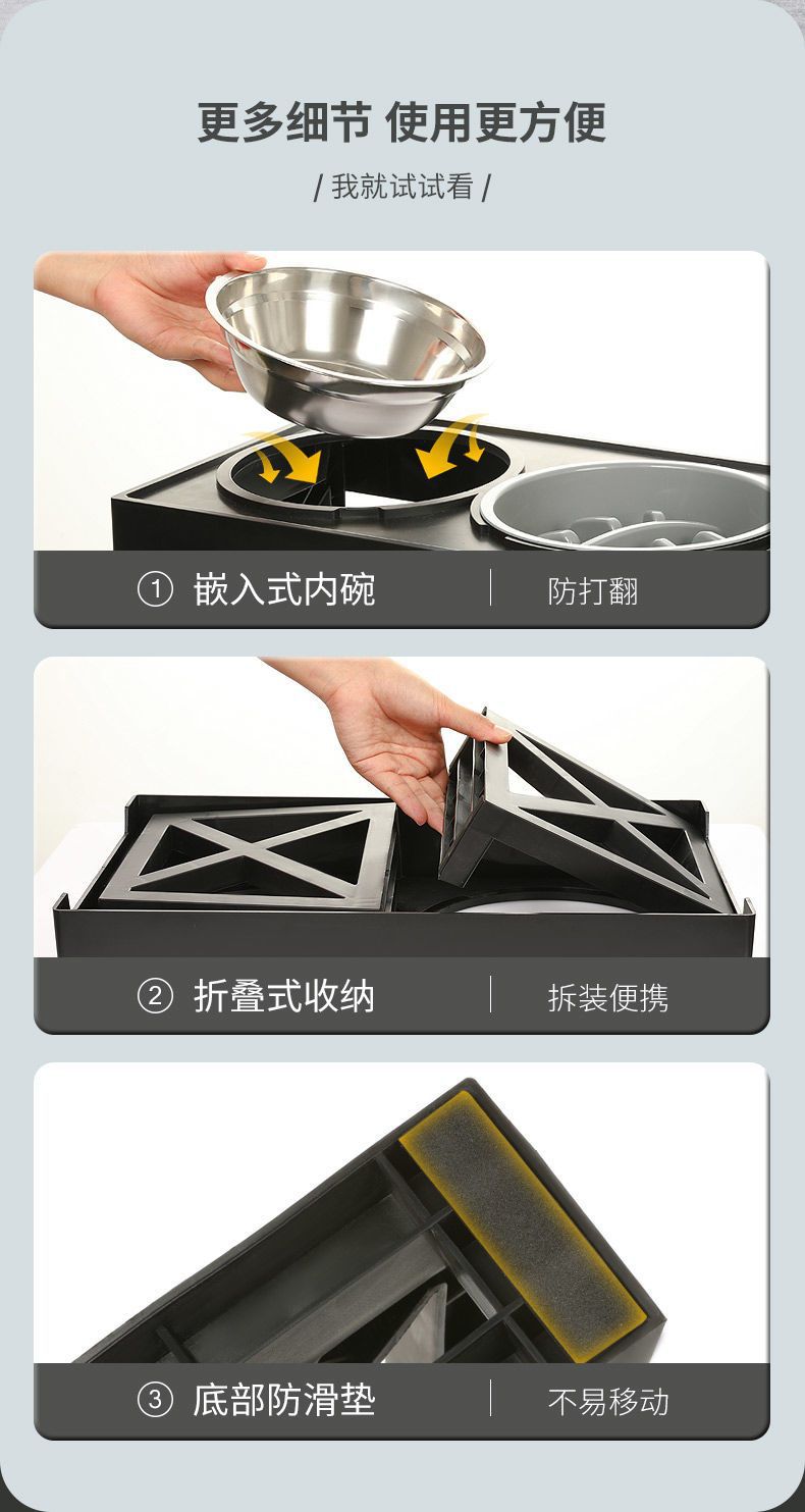 • 조절 가능한 높은 그릇(스테인리스 단일 그릇 + 슬로우 푸드 그릇)