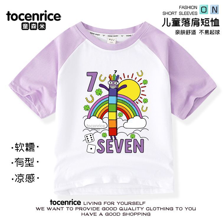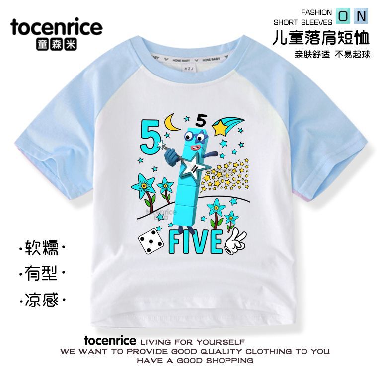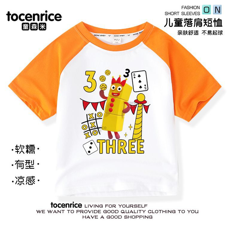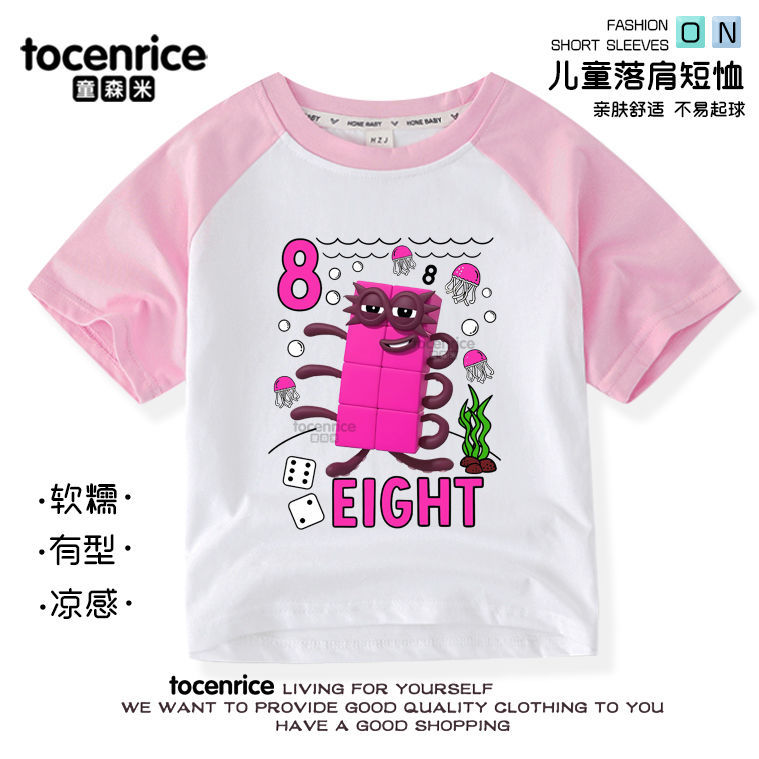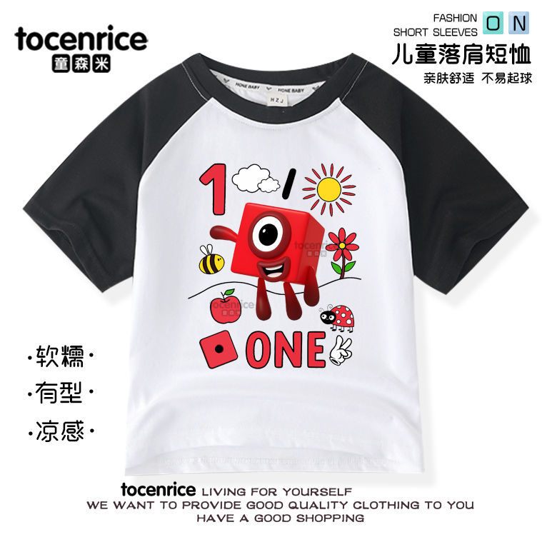 숫자 블록 디지털 빌딩 블록 티셔츠 아동복 소년 소녀 디지털 패턴 라글란 반팔 탑 트렌디