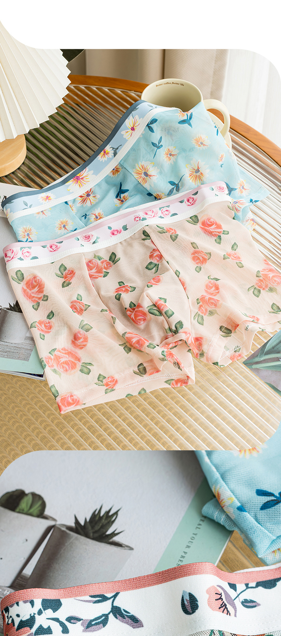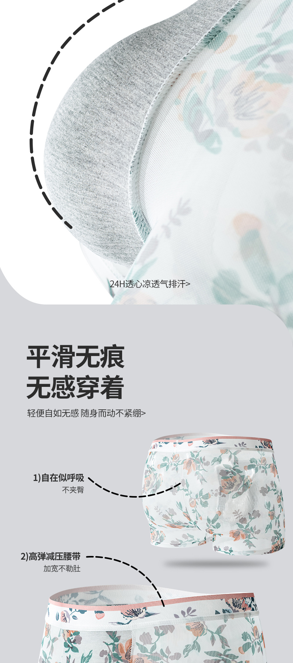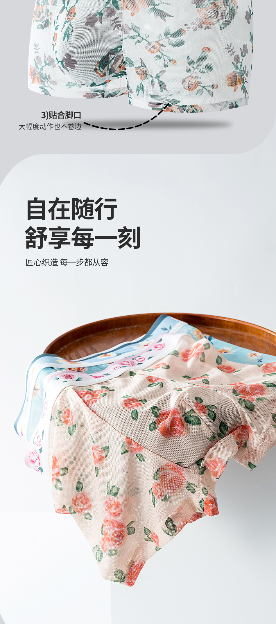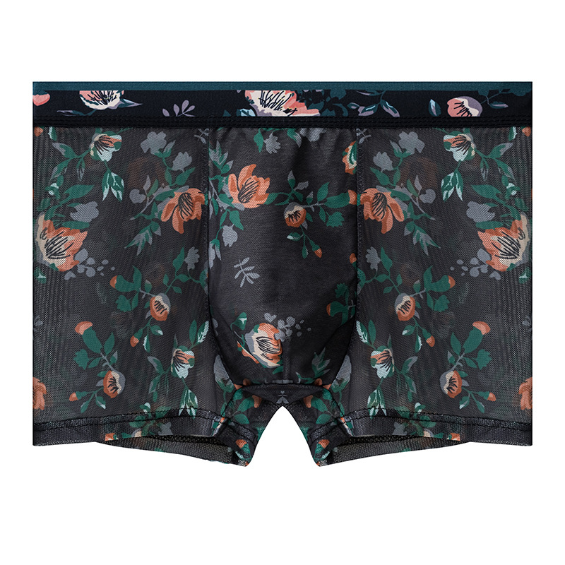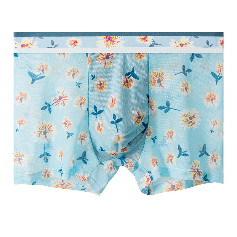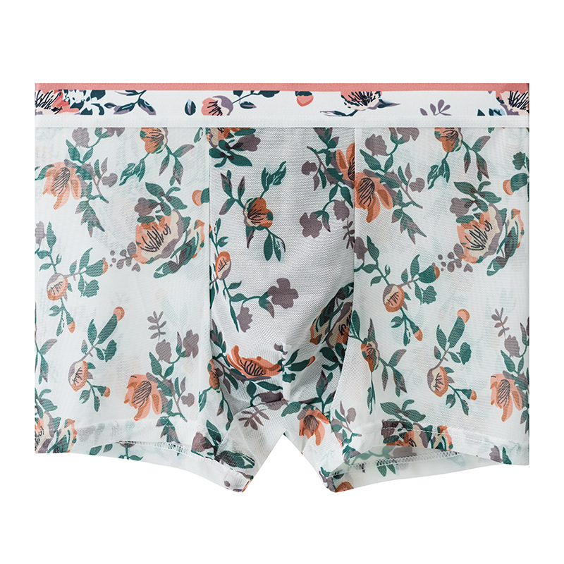 아이스 실크 얇은 남성용 속옷 중간 허리 통기성 피부 친화적 인 퀵 드라이 복서 레이스 프린트 복서 반바지