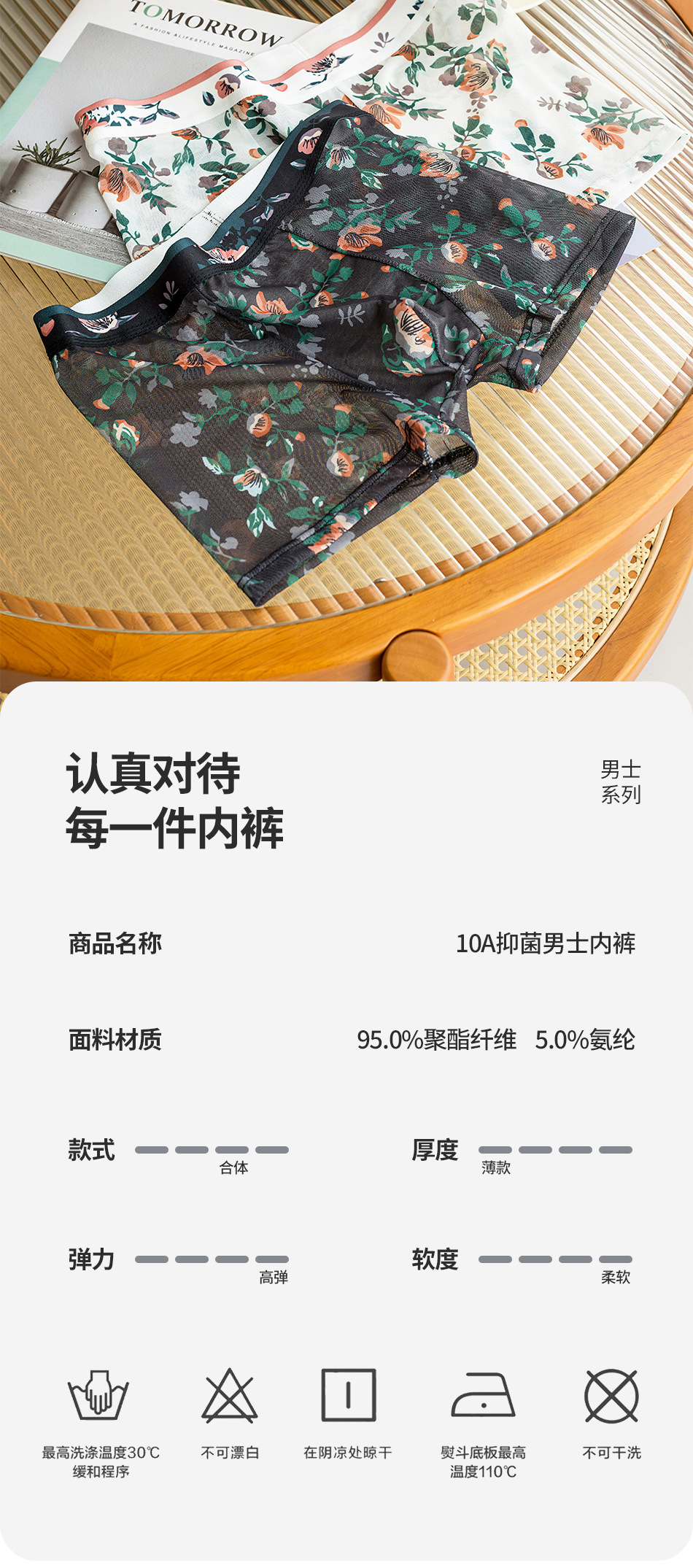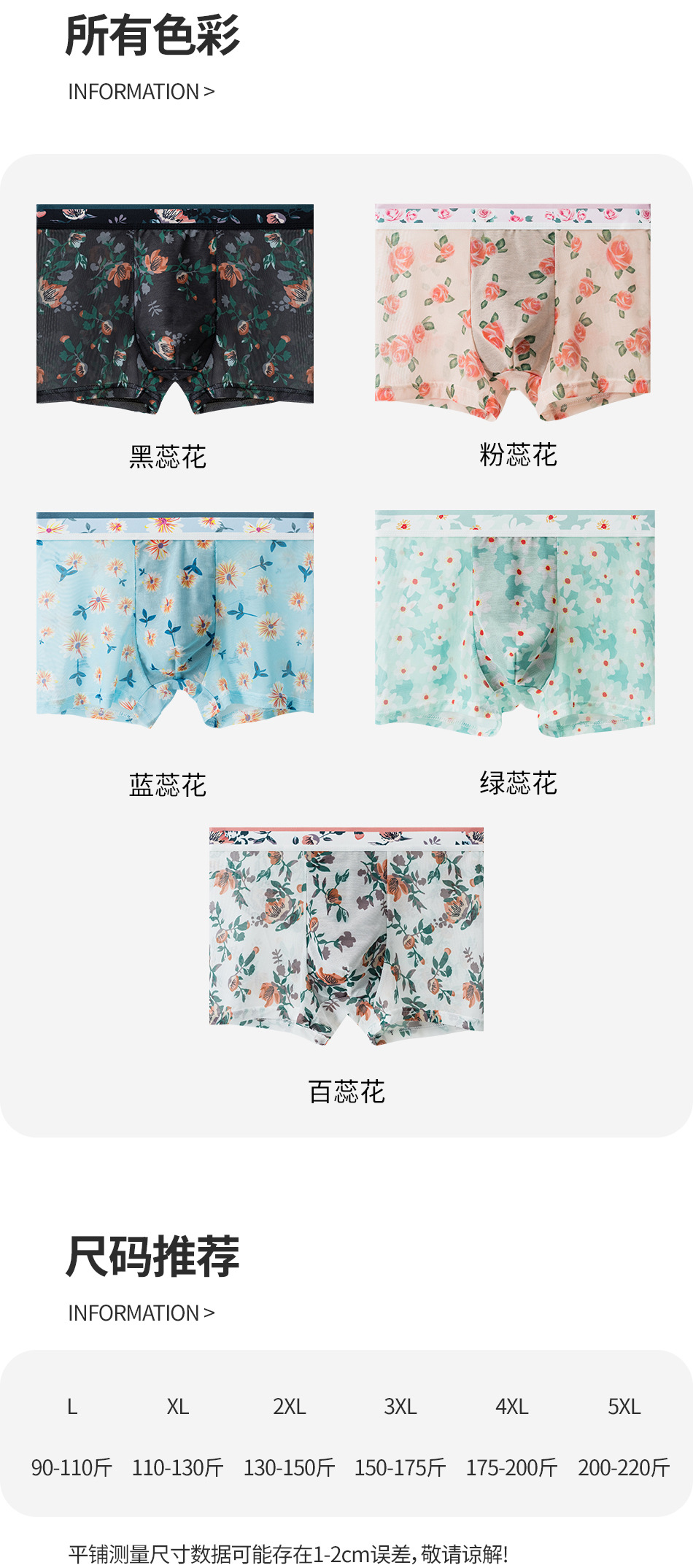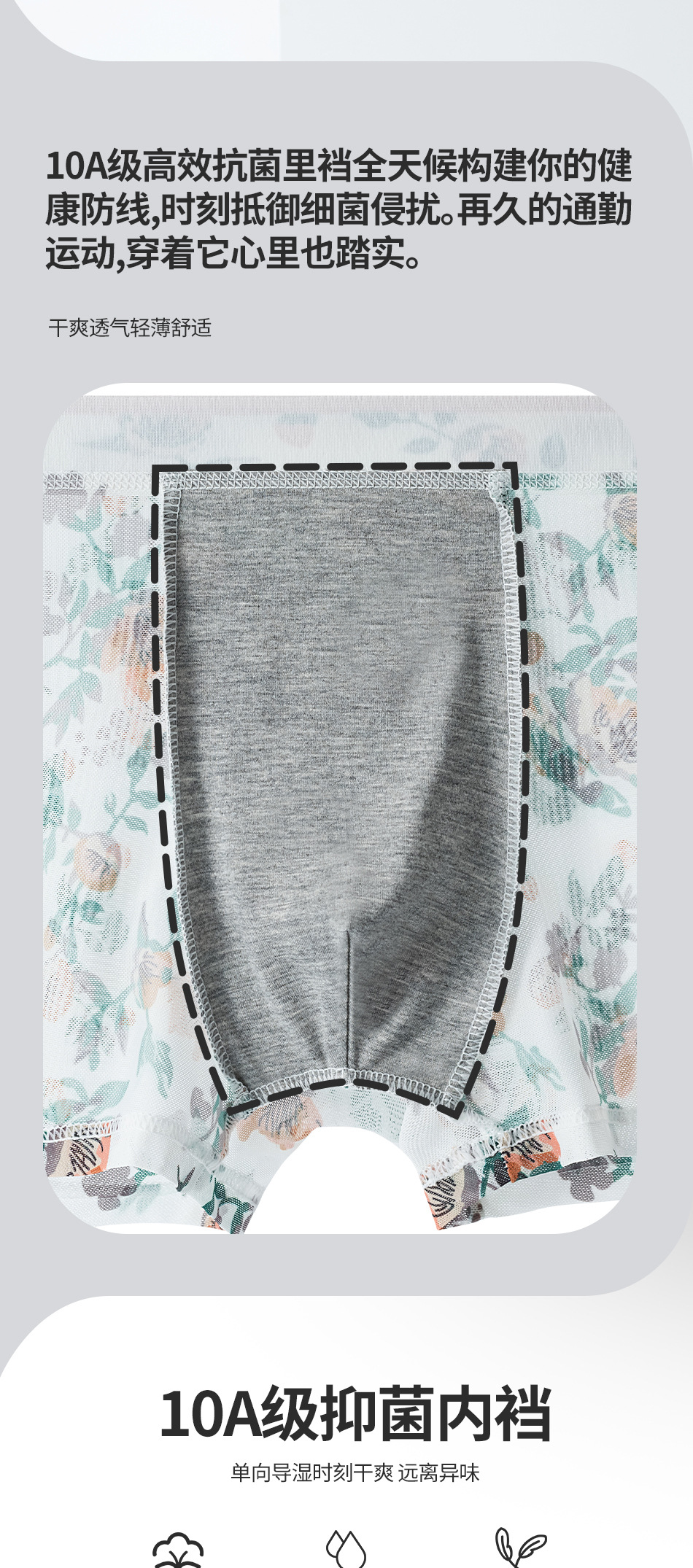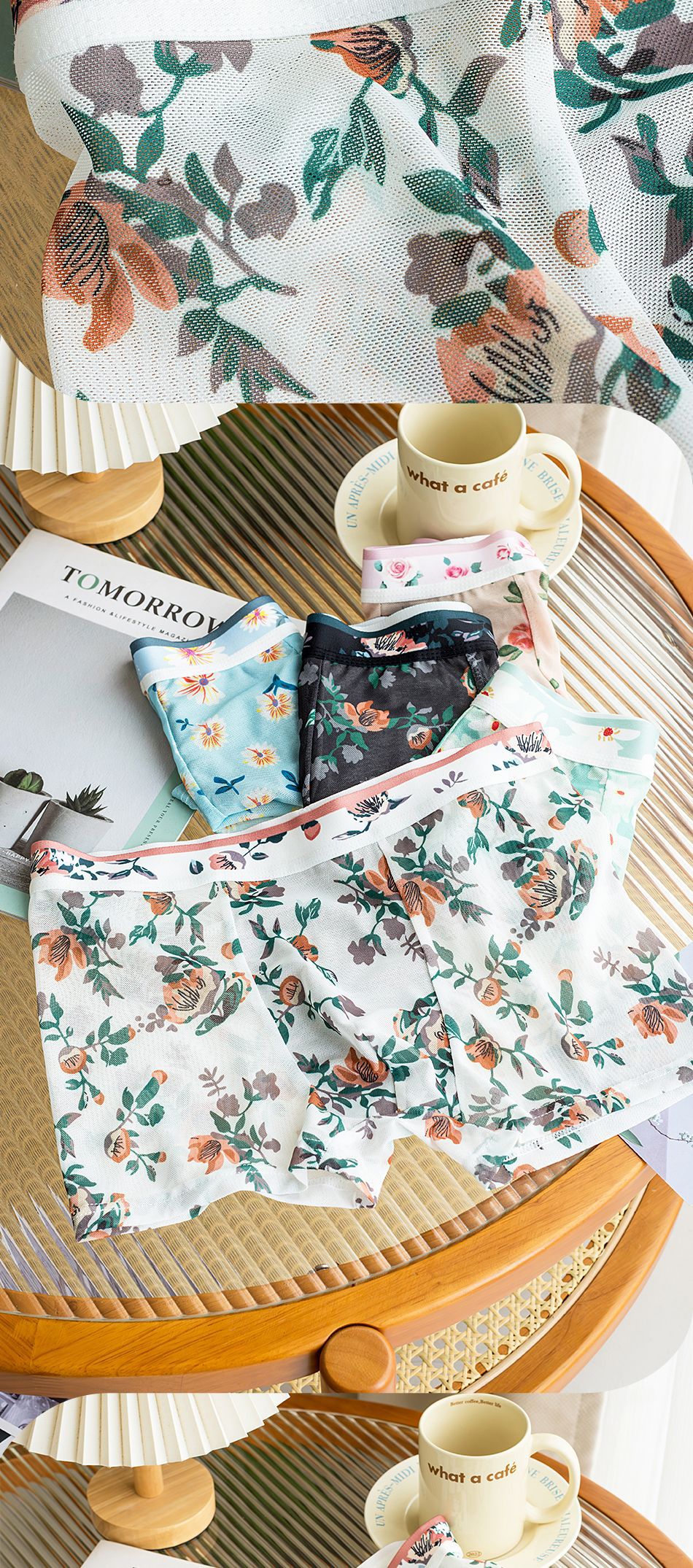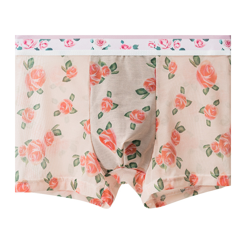 아이스 실크 얇은 남성용 속옷 중간 허리 통기성 피부 친화적 인 퀵 드라이 복서 레이스 프린트 복서 반바지
