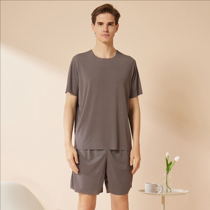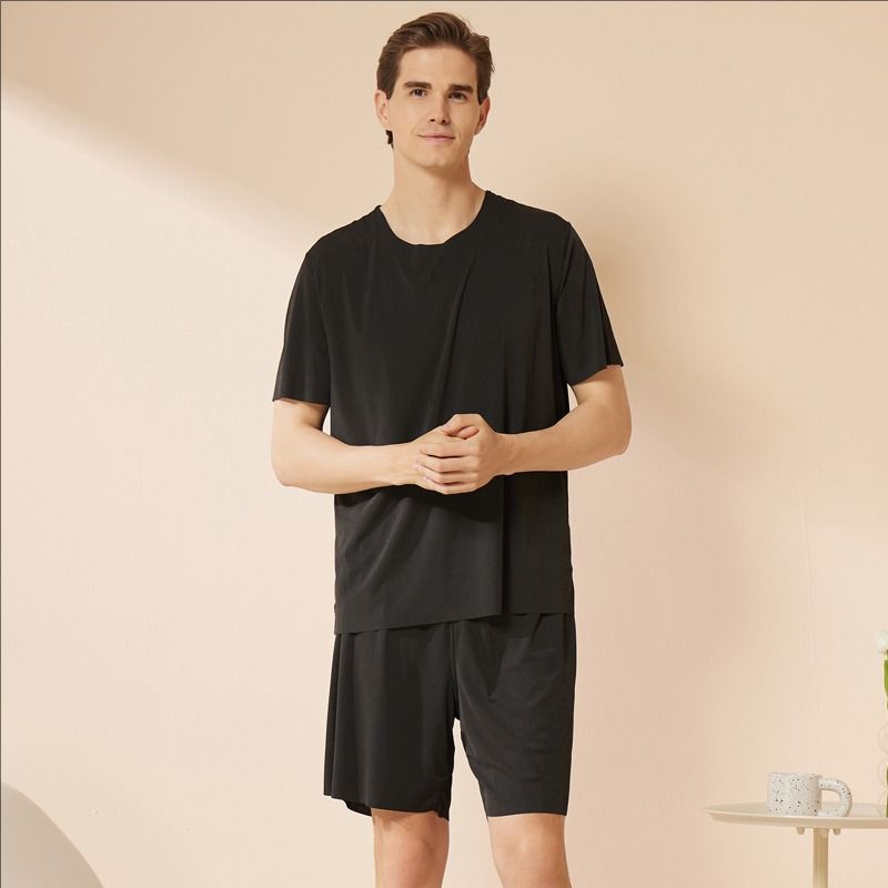 모달 남자 잠옷 아이스 실크 여름날 반팔 2025 신학생 청소년 가정 옷 세트 얇은