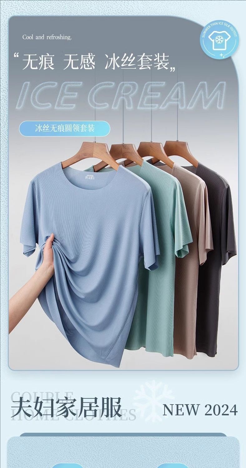 모달 남자 잠옷 아이스 실크 여름날 반팔 2025 신학생 청소년 가정 옷 세트 얇은스토어 가기