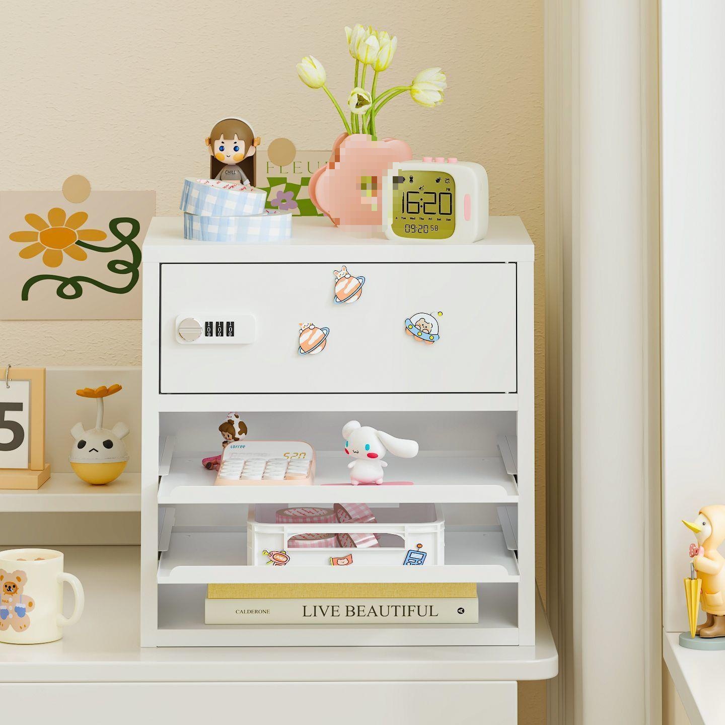 • 이중 서랍 서랍 비밀번호 캐비닛 흰색