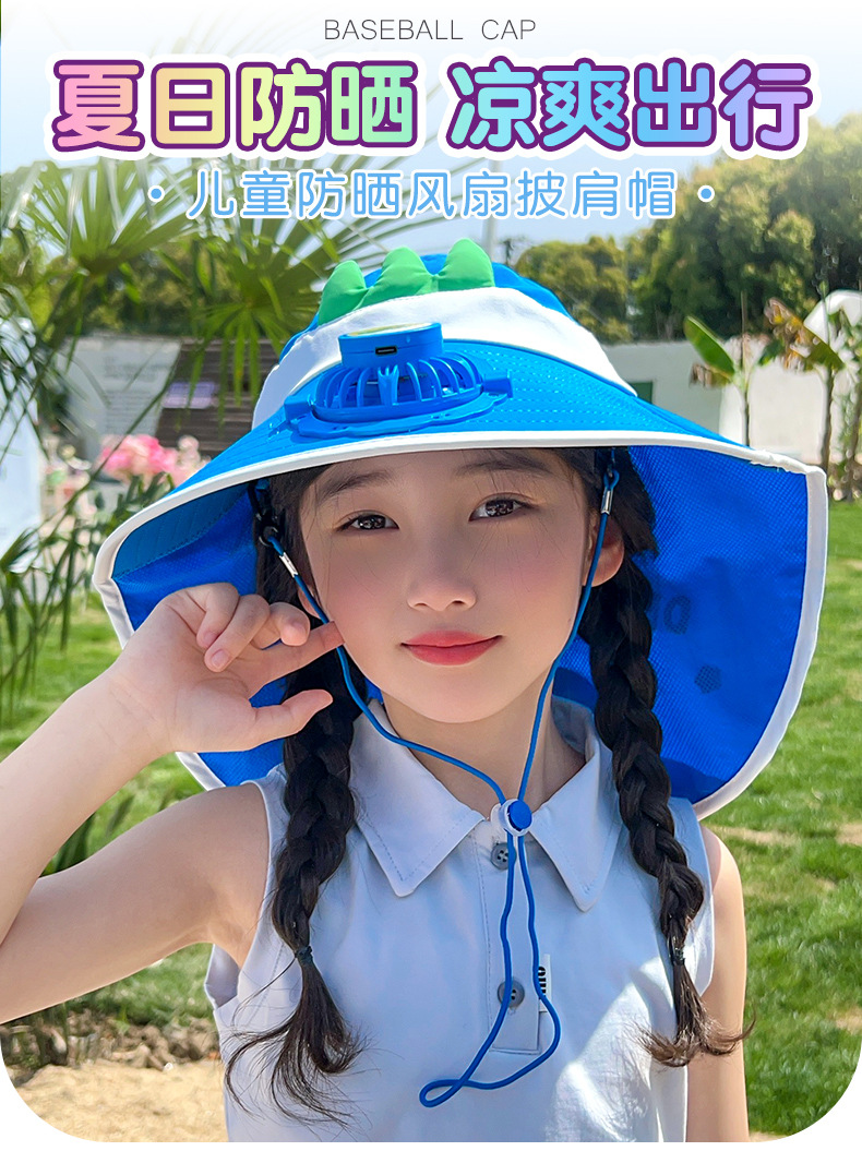 • 7#감청색 만화 공룡 빈 탑 단일 팬 숄 모자