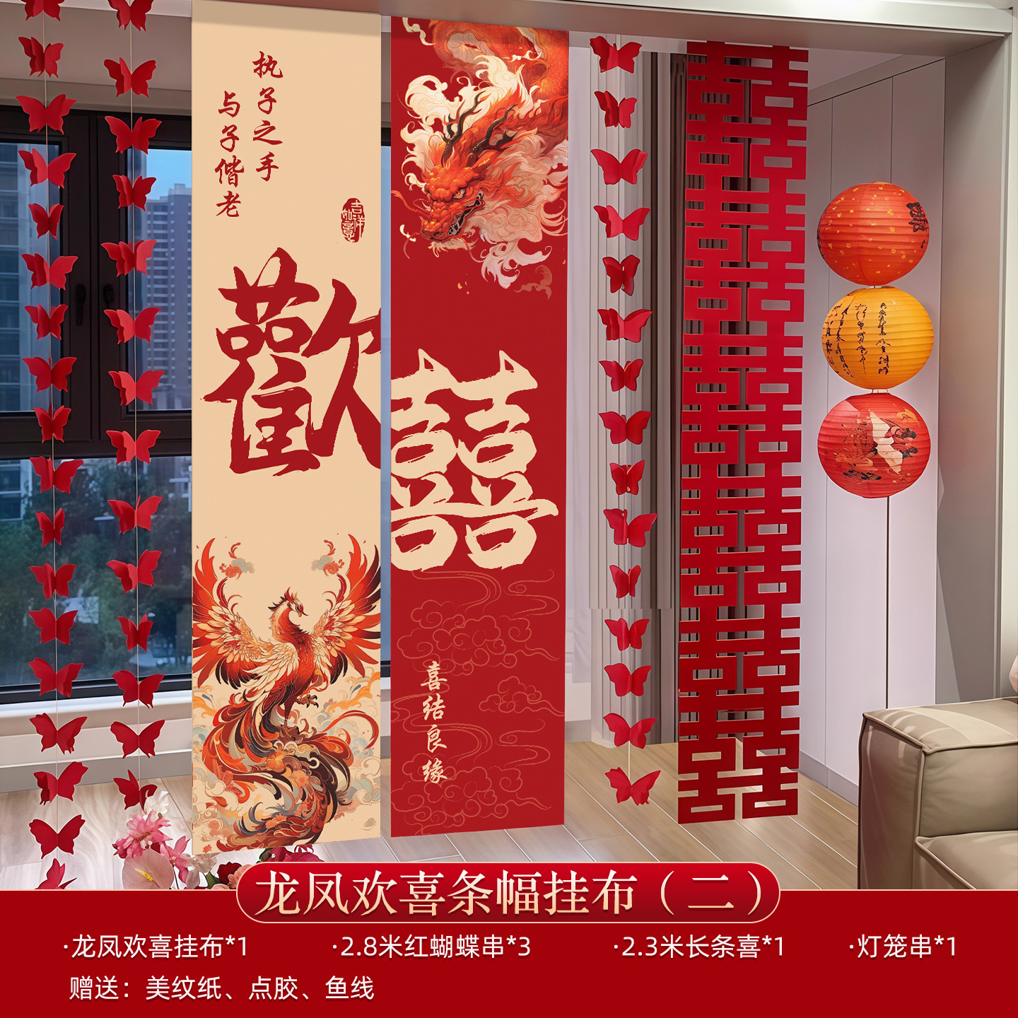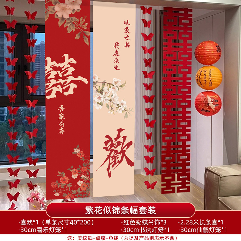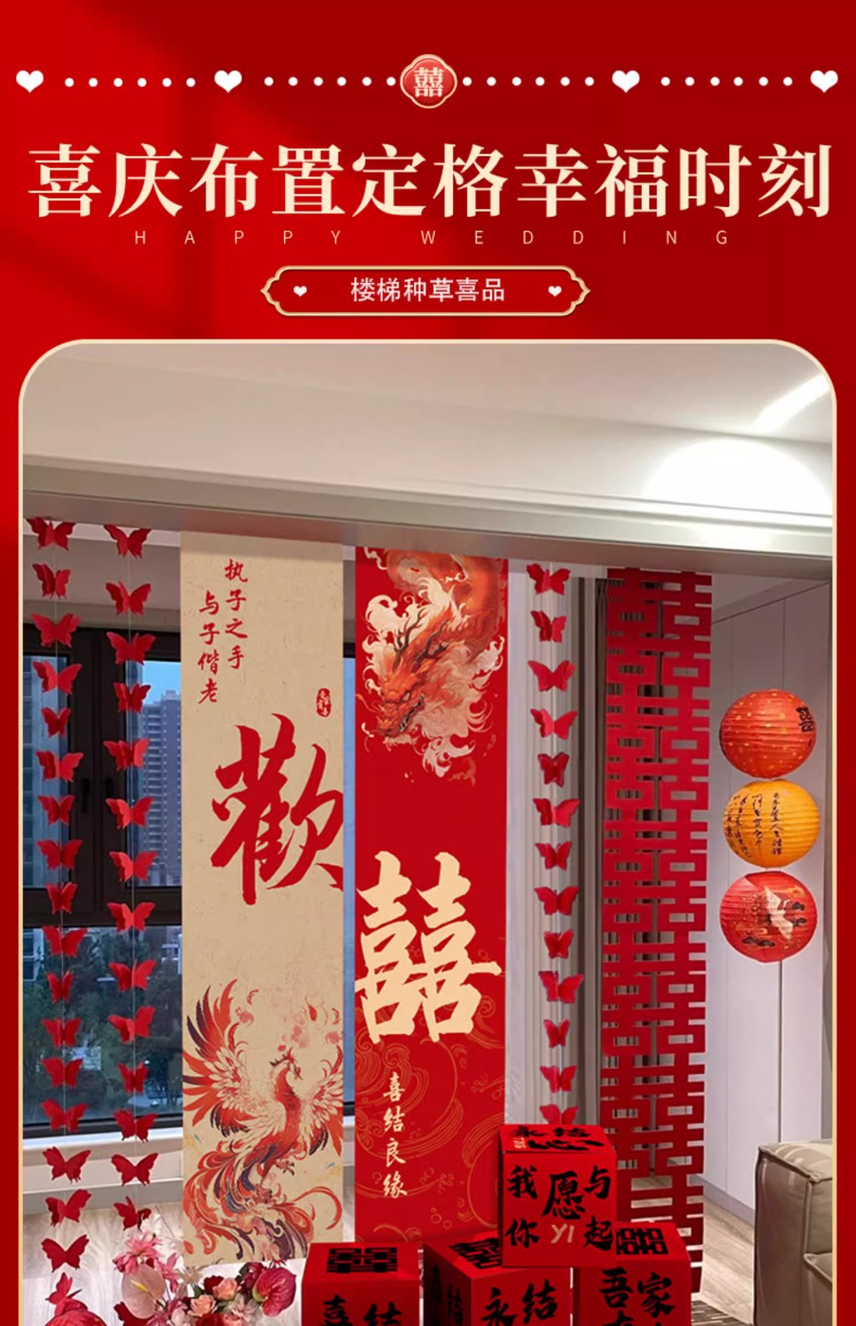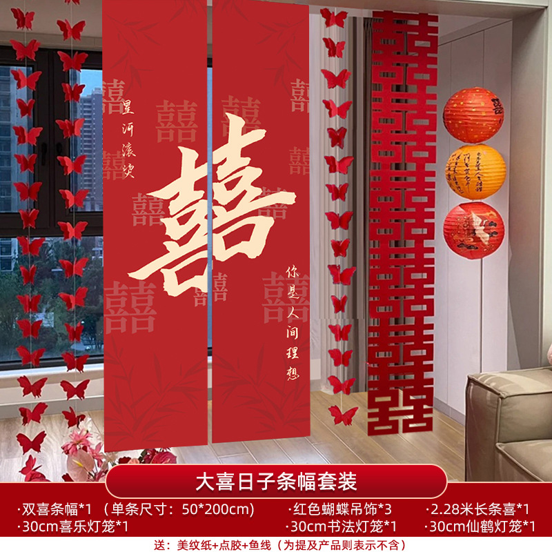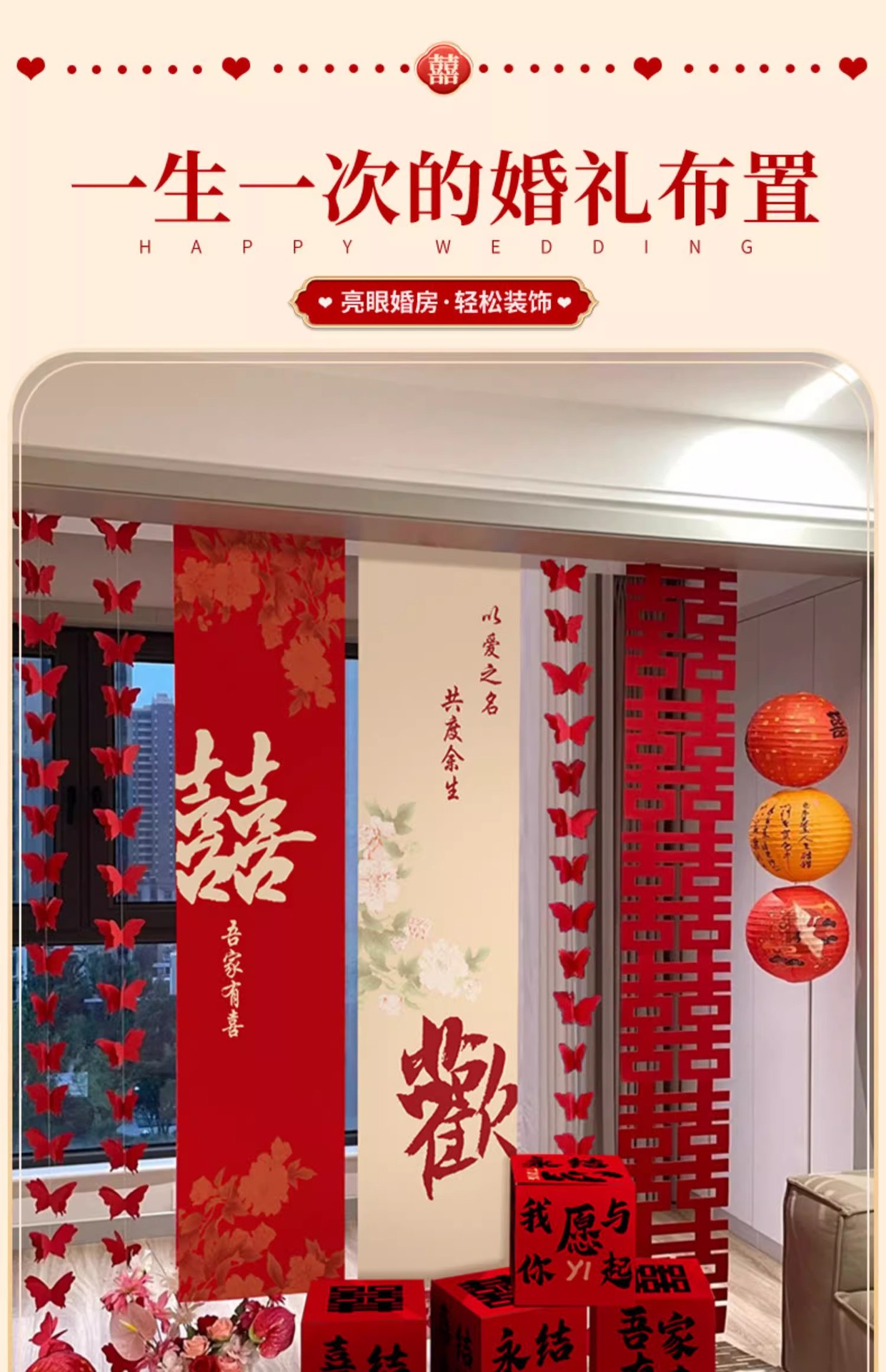 웨딩 교수형 천 배너 해피 캐릭터 거실 웨딩 룸 장식 약혼 용품 배치 웨딩 룸 남녀 광장 커튼 펜던트스토어 가기