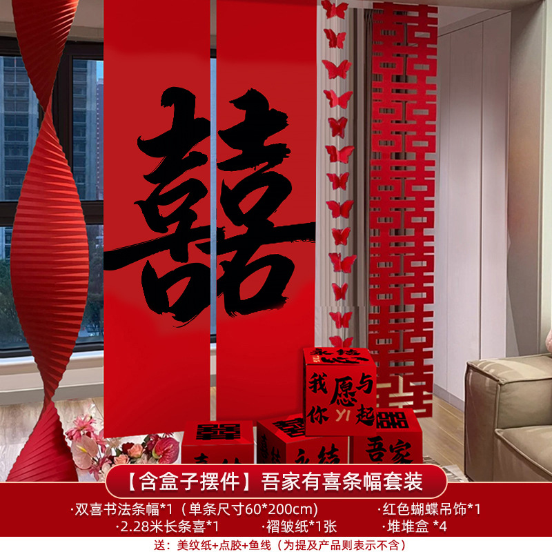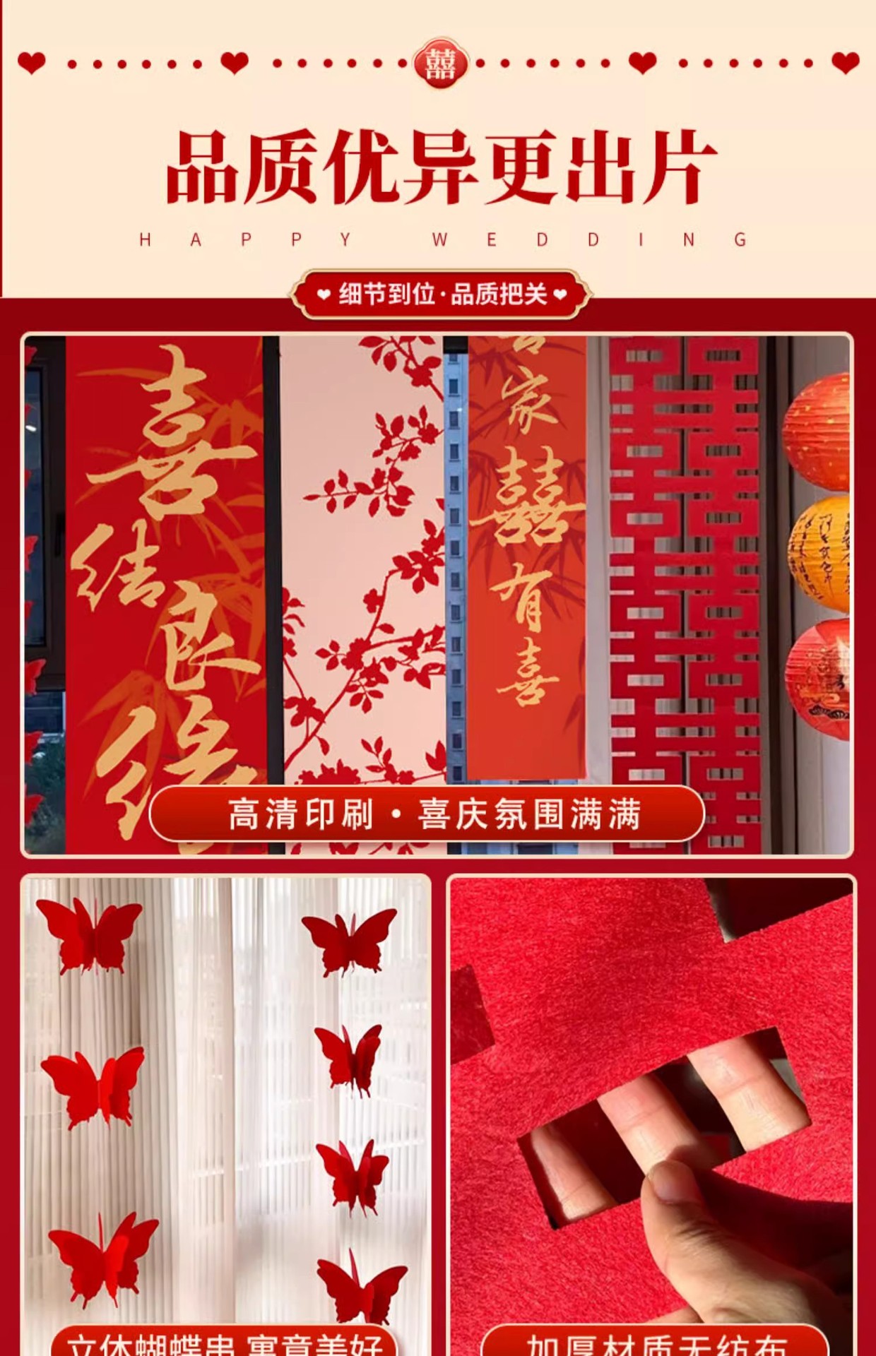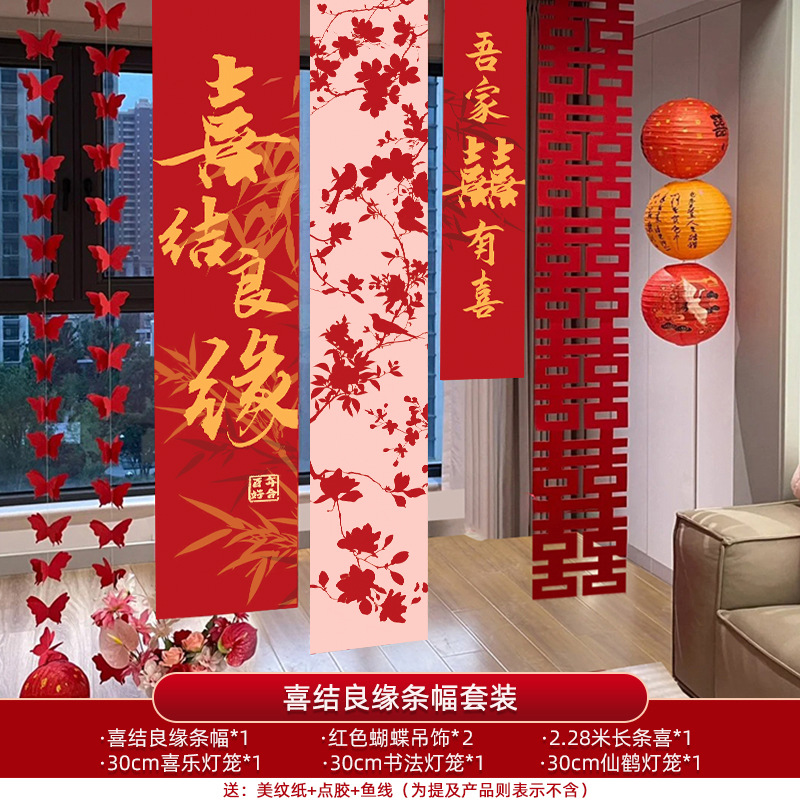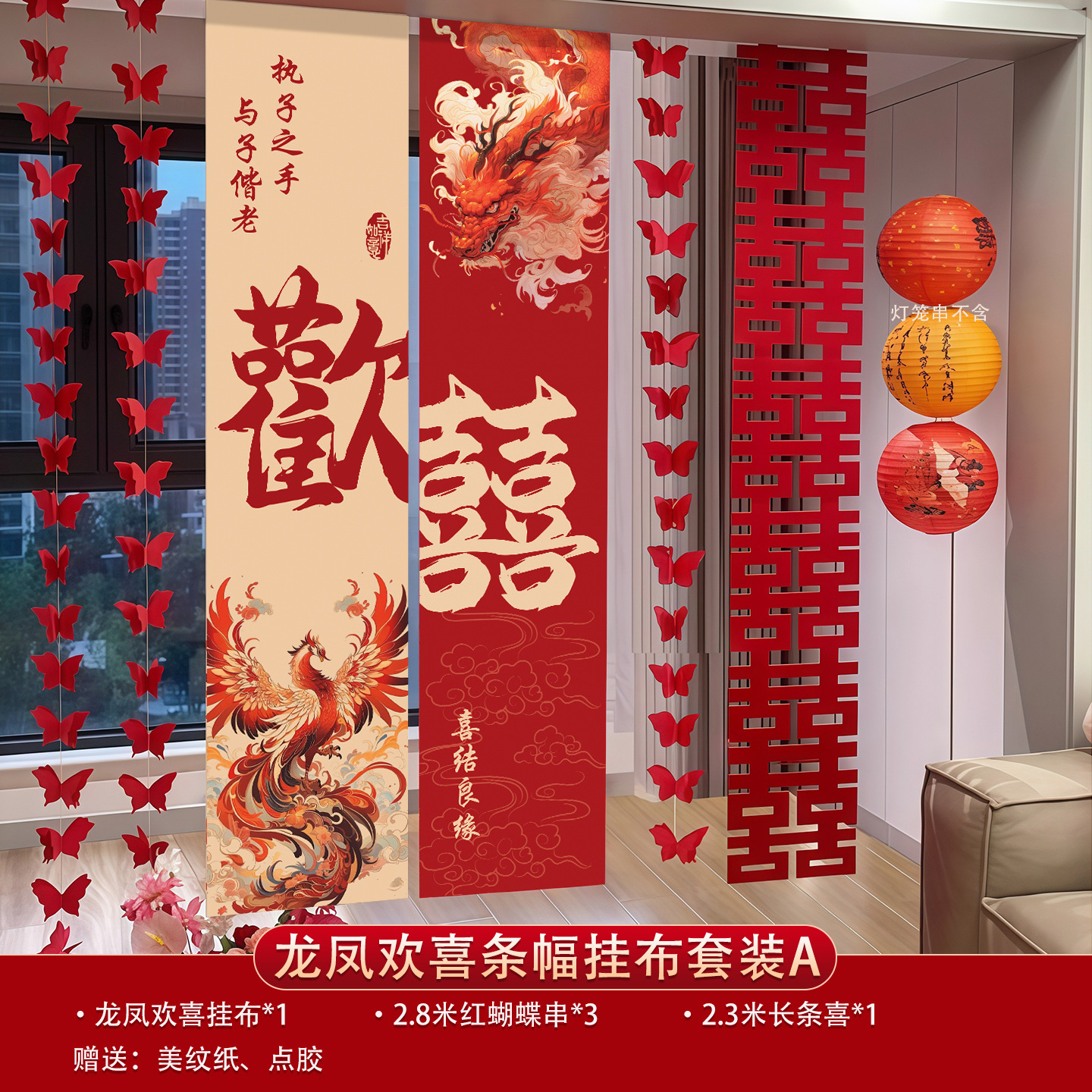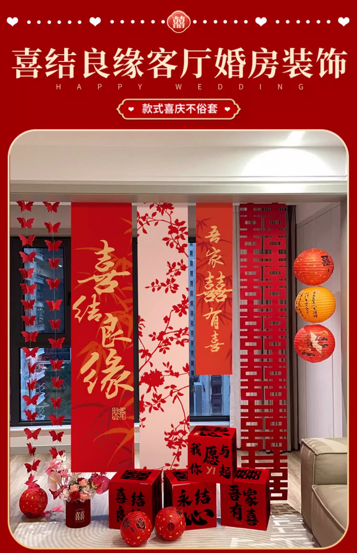 웨딩 교수형 천 배너 해피 캐릭터 거실 웨딩 룸 장식 약혼 용품 배치 웨딩 룸 남녀 광장 커튼 펜던트스토어 가기