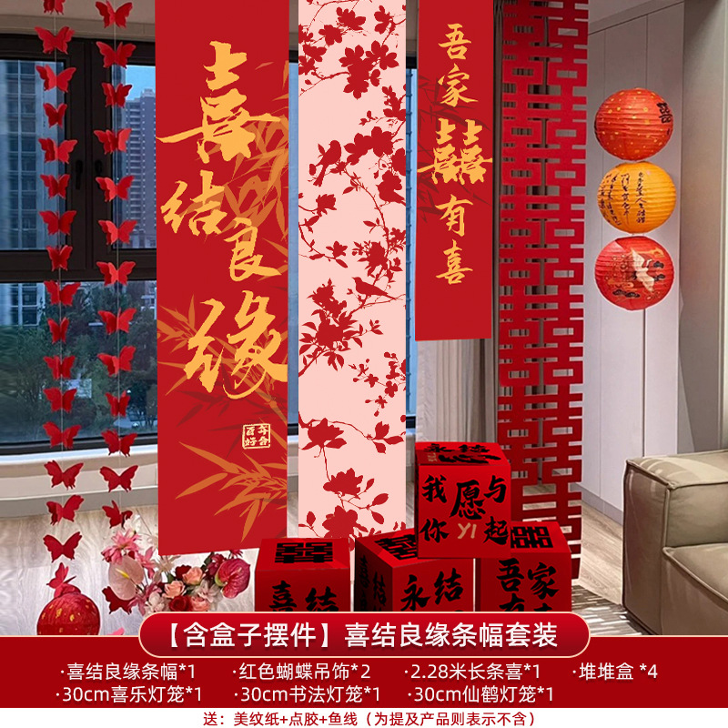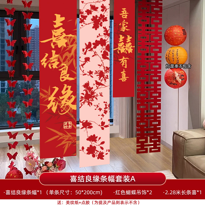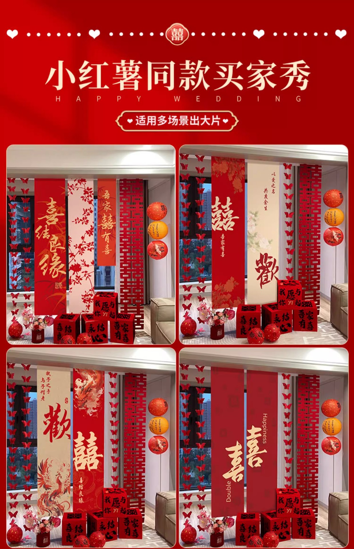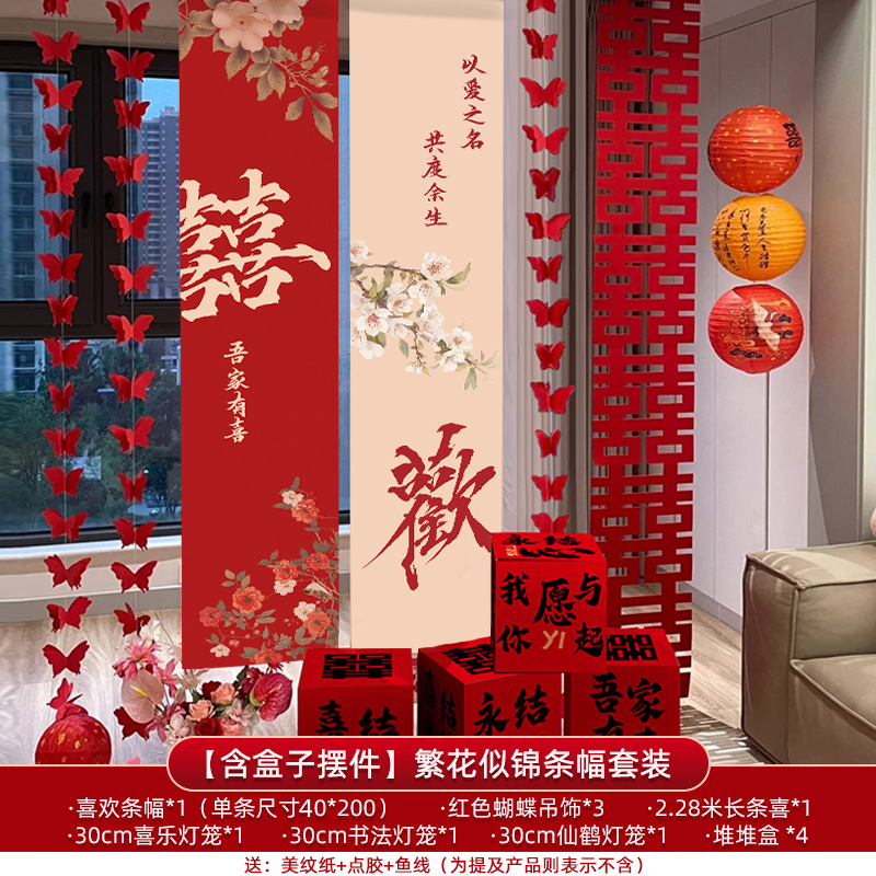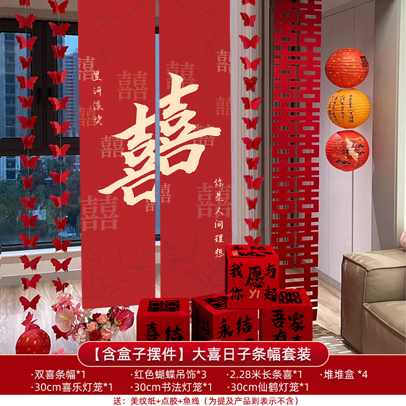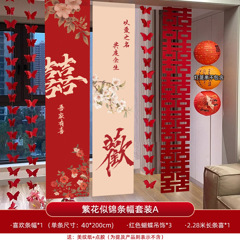 웨딩 교수형 천 배너 해피 캐릭터 거실 웨딩 룸 장식 약혼 용품 배치 웨딩 룸 남녀 광장 커튼 펜던트스토어 가기
