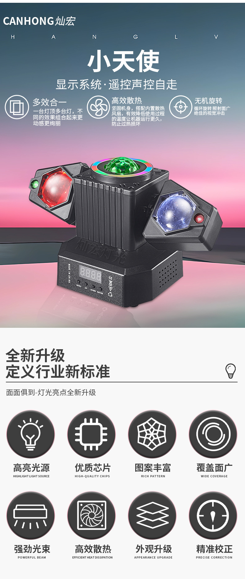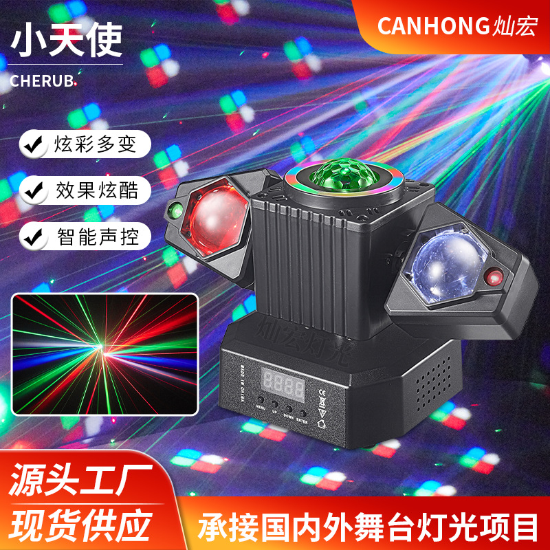 새로운 작은 천사 무한 회전 이동 헤드 라이트 dj 레이저 매직 볼 라이트 회전 이동 헤드 라이트 KTV 분위기 플래시 라이트