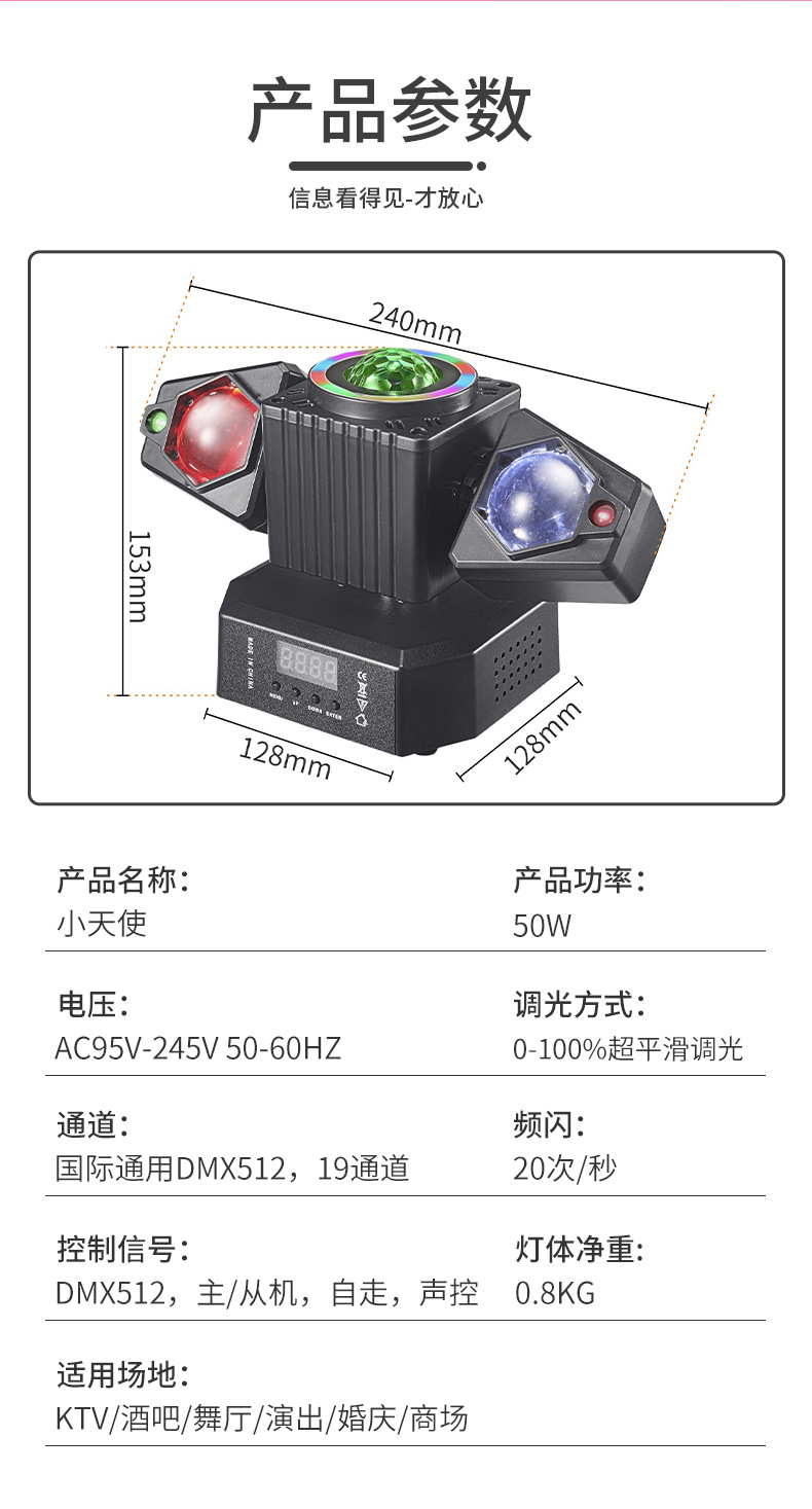 새로운 작은 천사 무한 회전 이동 헤드 라이트 dj 레이저 매직 볼 라이트 회전 이동 헤드 라이트 KTV 분위기 플래시 라이트스토어 가기