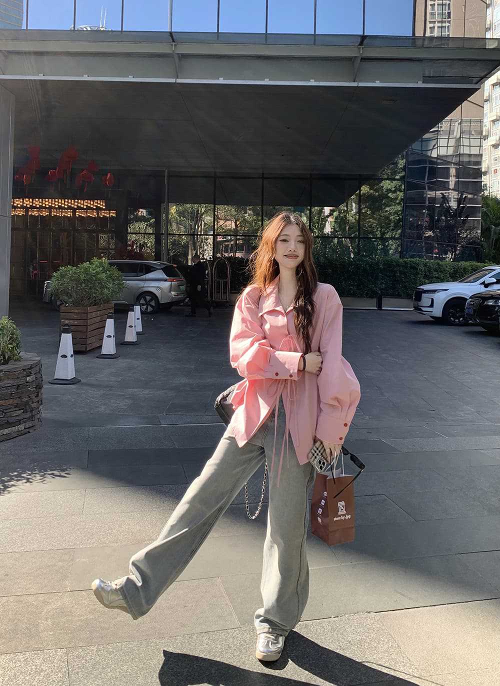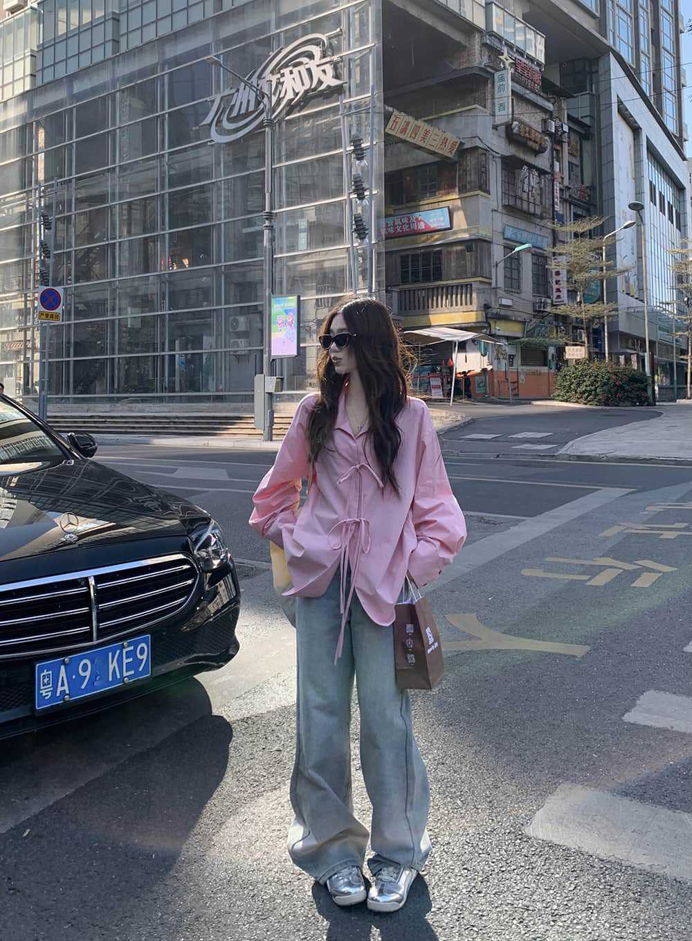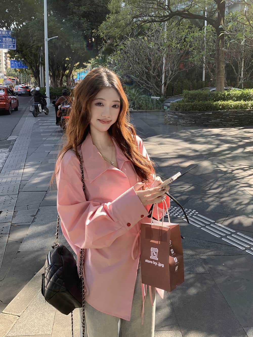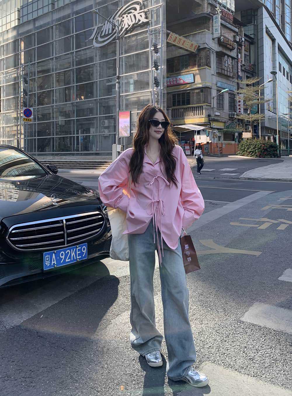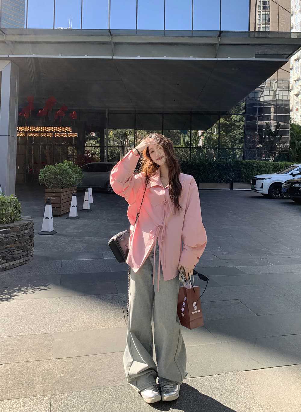여성을위한 아침 스타일 게으른 스타일 보우 타이 긴팔 셔츠 여름 새로운 캐주얼 루즈 라펠 중간 길이 탑스토어 가기