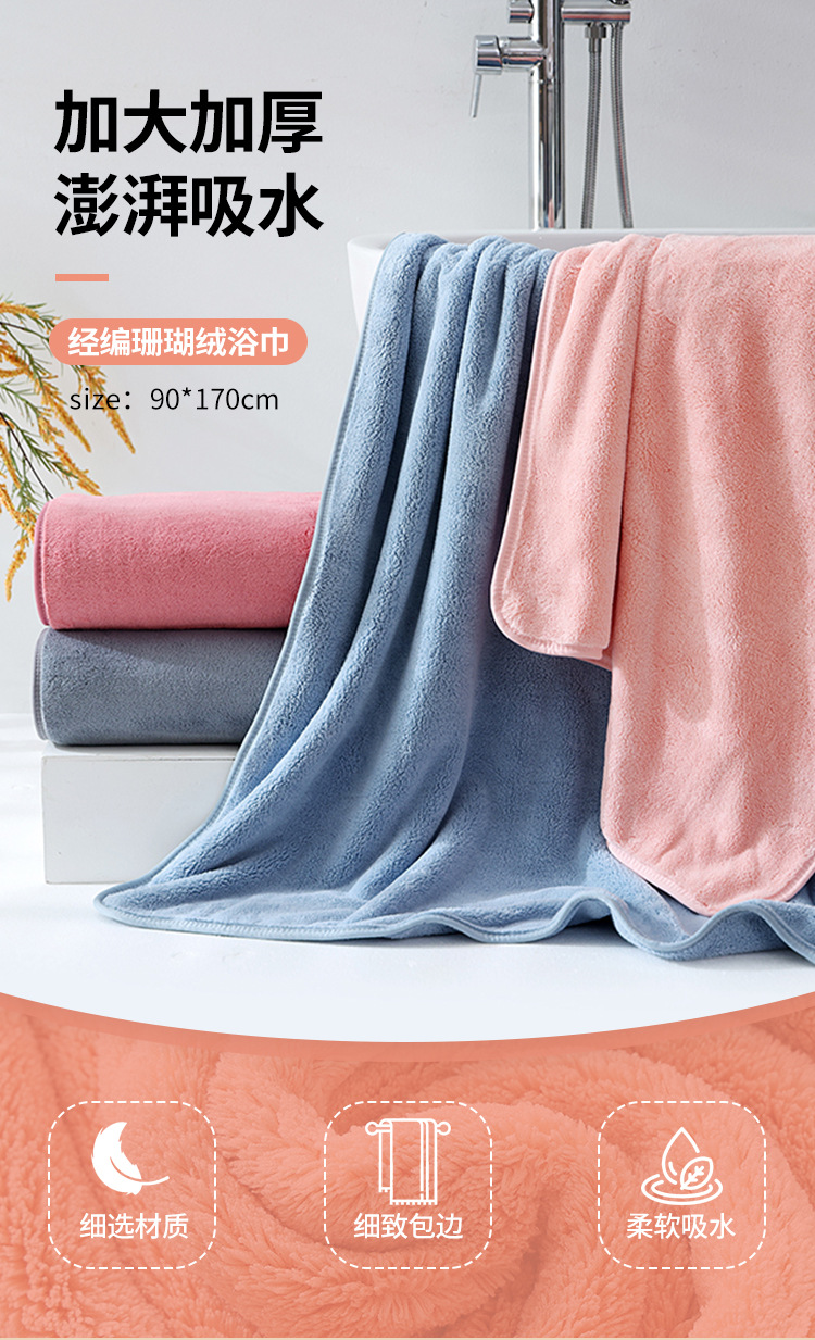 일반 색상 두꺼운 산호 벨벳 목욕 타월 90*170 수건 선물 흡수성 두꺼운 성인 얼굴 수건 가정용 목욕 타월