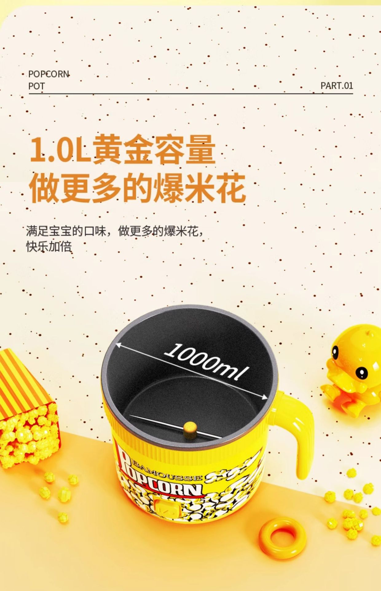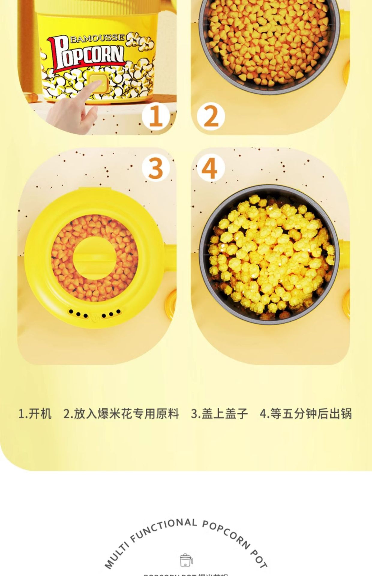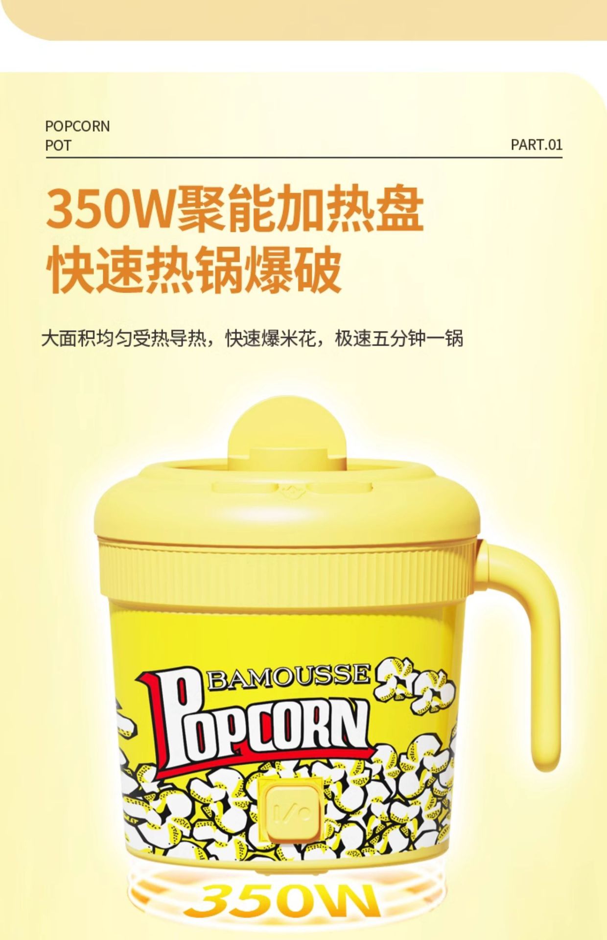 Bamus 팝콘 기계 완전 자동 소형 가정용 어린이 생일 선물 팝콘 기계 옥수수 팝콘스토어 가기