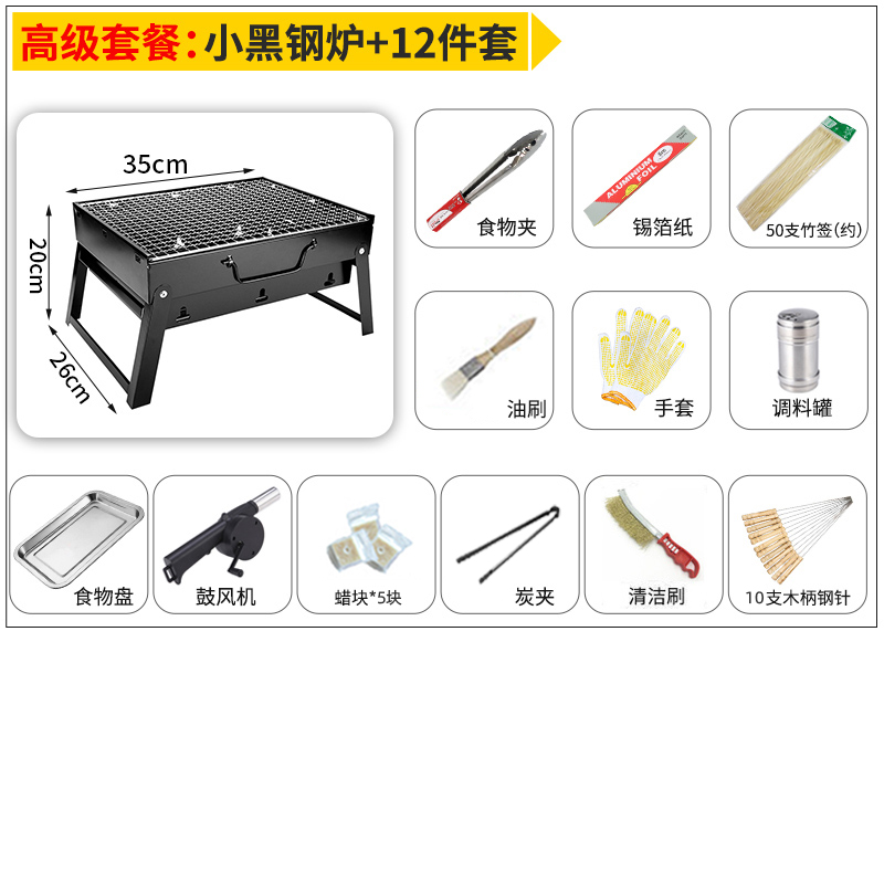 • 작은 검은색 강철 난로 + 12개 세트