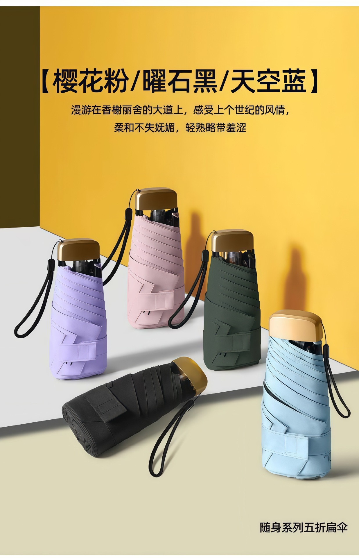 포켓 캡슐 우산 두꺼운 블랙 글로시 자외선 차단 양산 겸용 우산 휴대용 여성용 태양 우산 도매 맞춤 제작스토어 가기