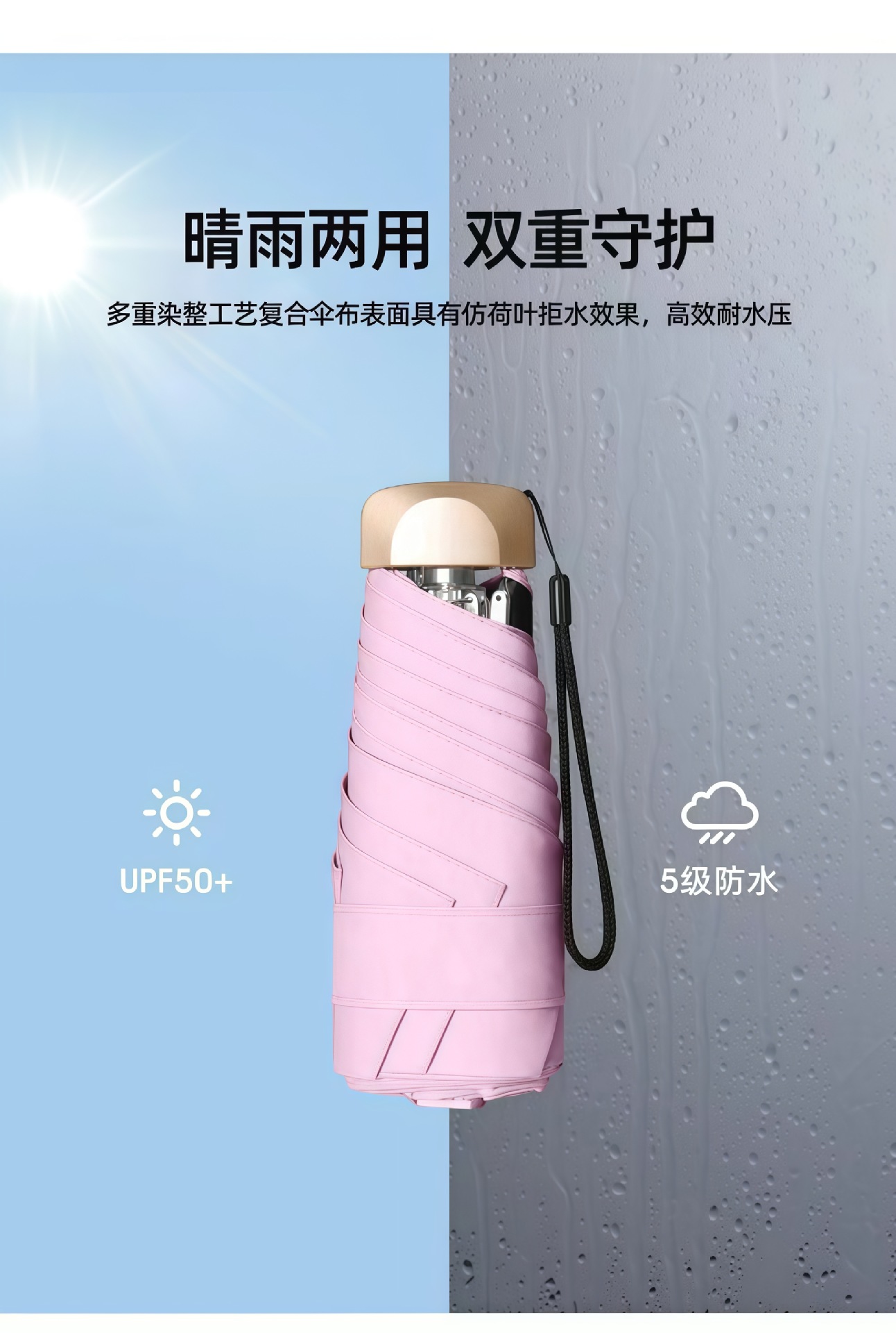 포켓 캡슐 우산 두꺼운 블랙 글로시 자외선 차단 양산 겸용 우산 휴대용 여성용 태양 우산 도매 맞춤 제작