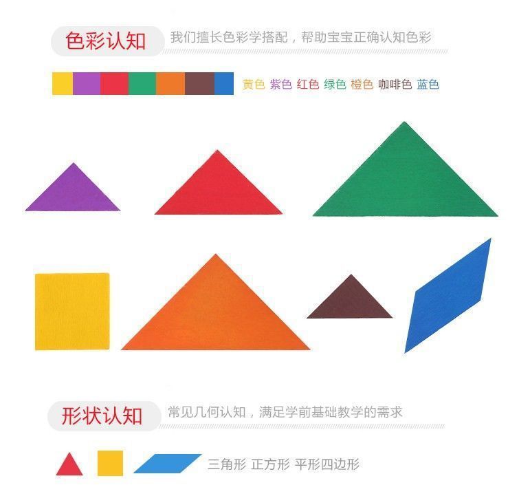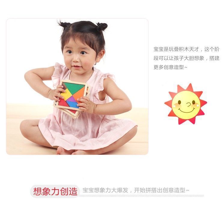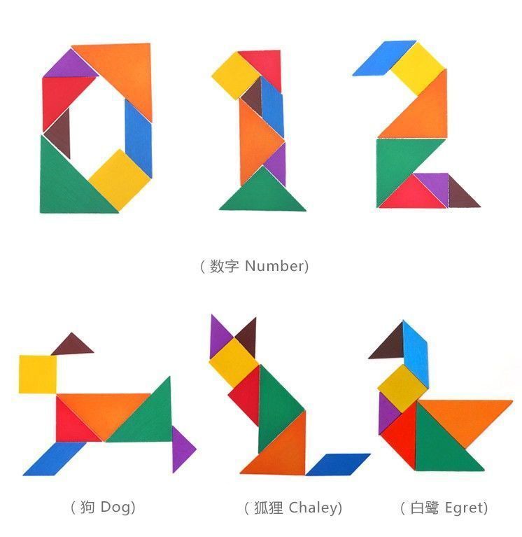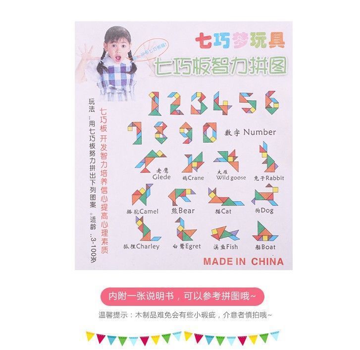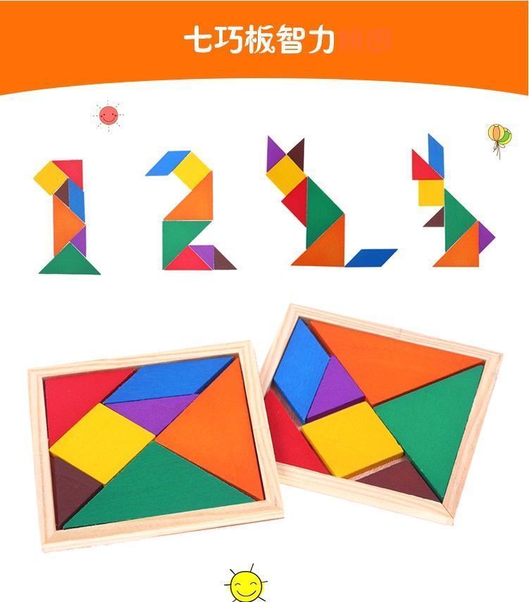 1, 2, 3학년 Tangram 지적 퍼즐 초등학생 수학 교육 보조 나무 퍼즐 보드 어린이 교육 장난감스토어 가기