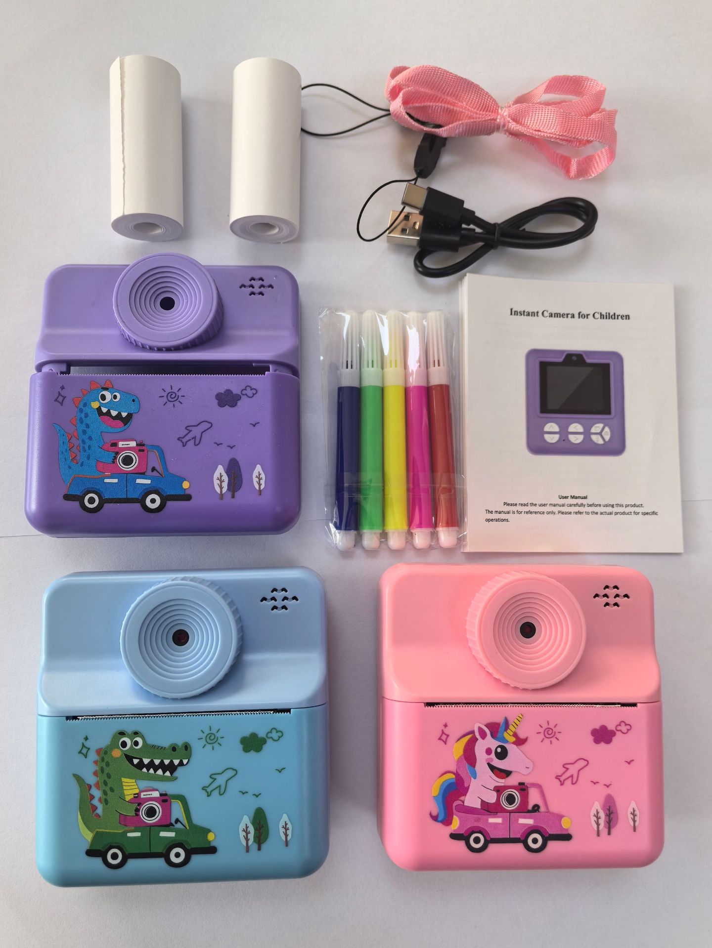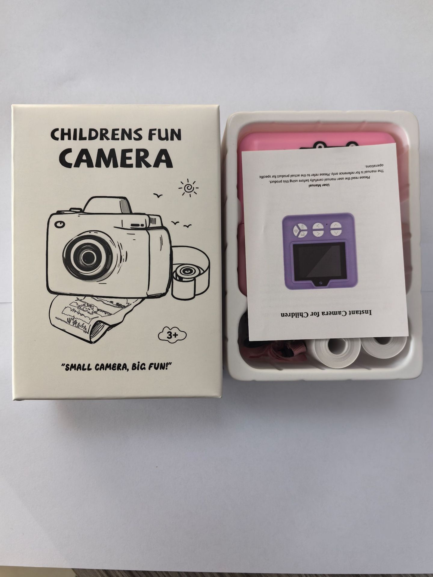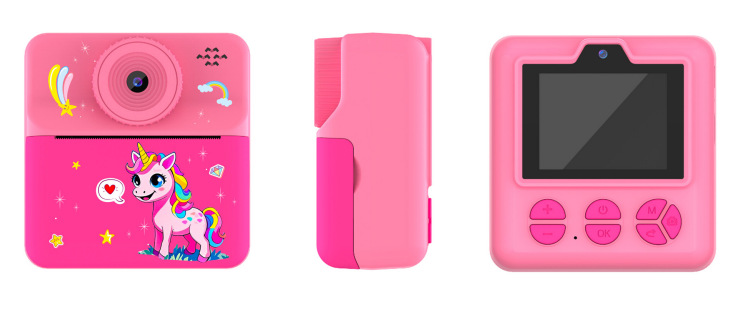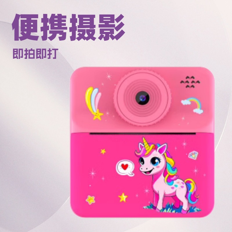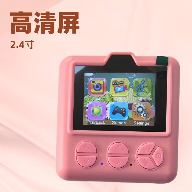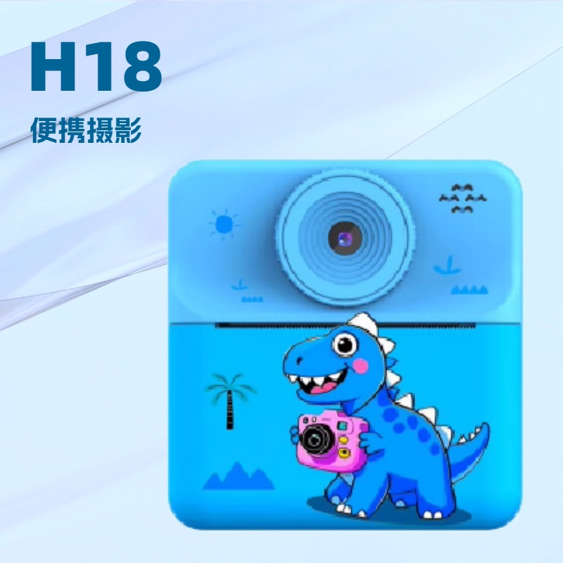 本产品儿童手机H18,主要特点是可以立拍立打印相片功能,大屏幕2.4寸,可以拍照,录像,大头贴变化,玩小游戏等功能,支持32G内存卡,配件有说明书,充电线,挂绳,天地盒子和3个打印纸。