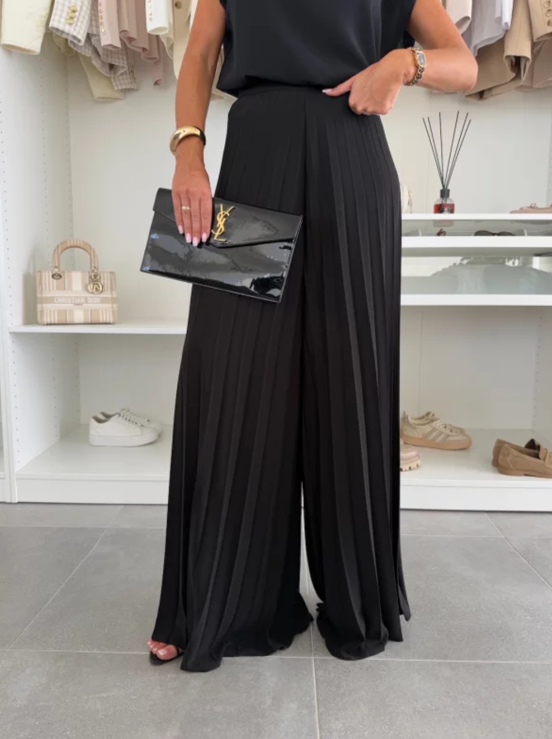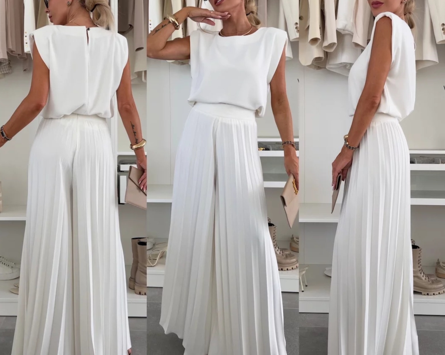 국경 2025 대외 무역 여성 패션 세트 둥근 목 민소매 탑 주름 넓은 다리 바지 투피스 캐주얼 세트