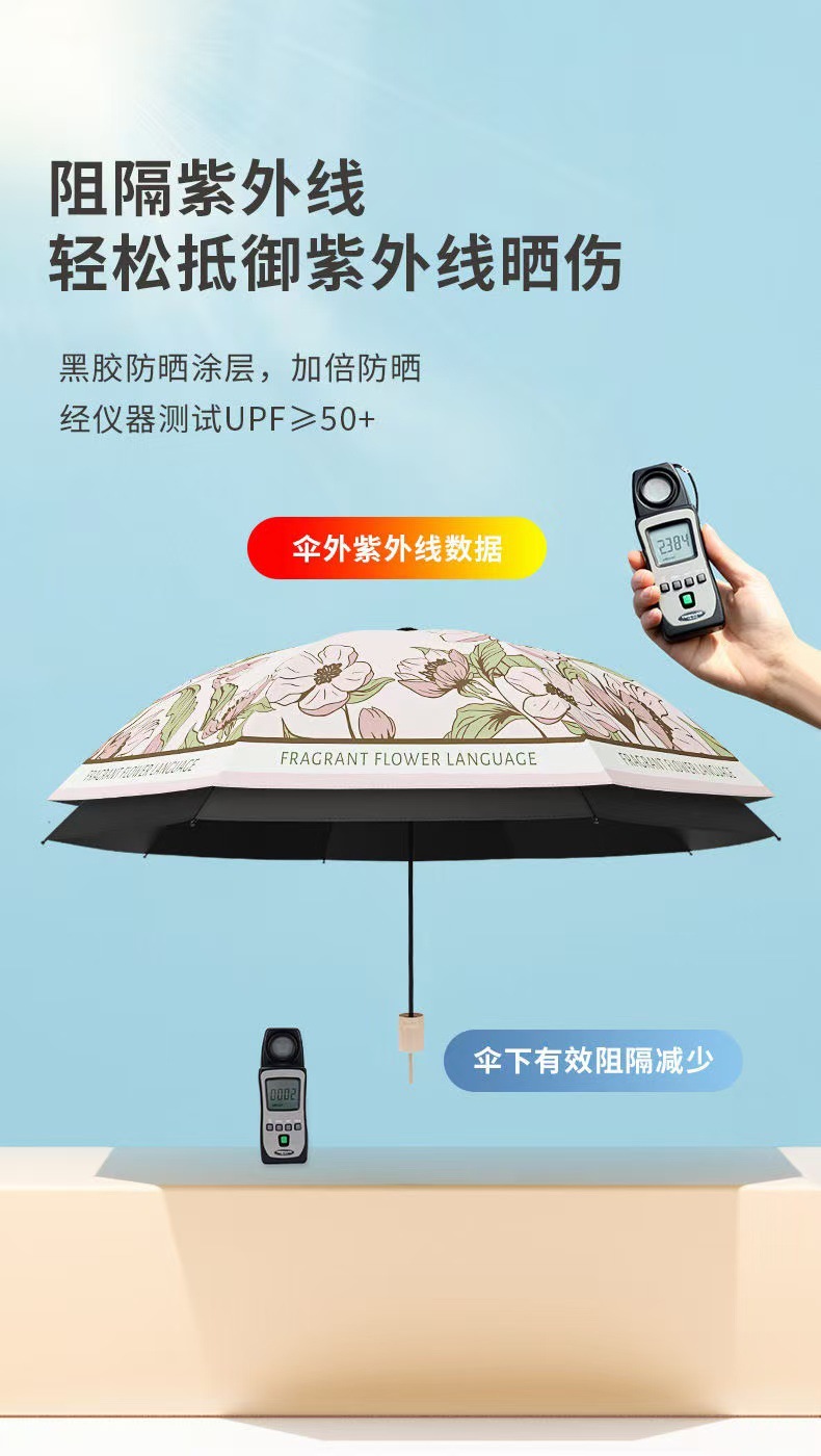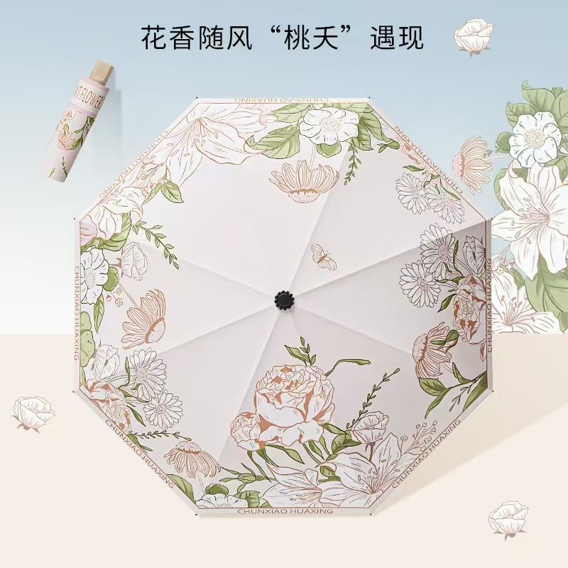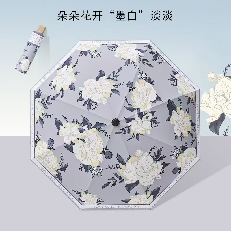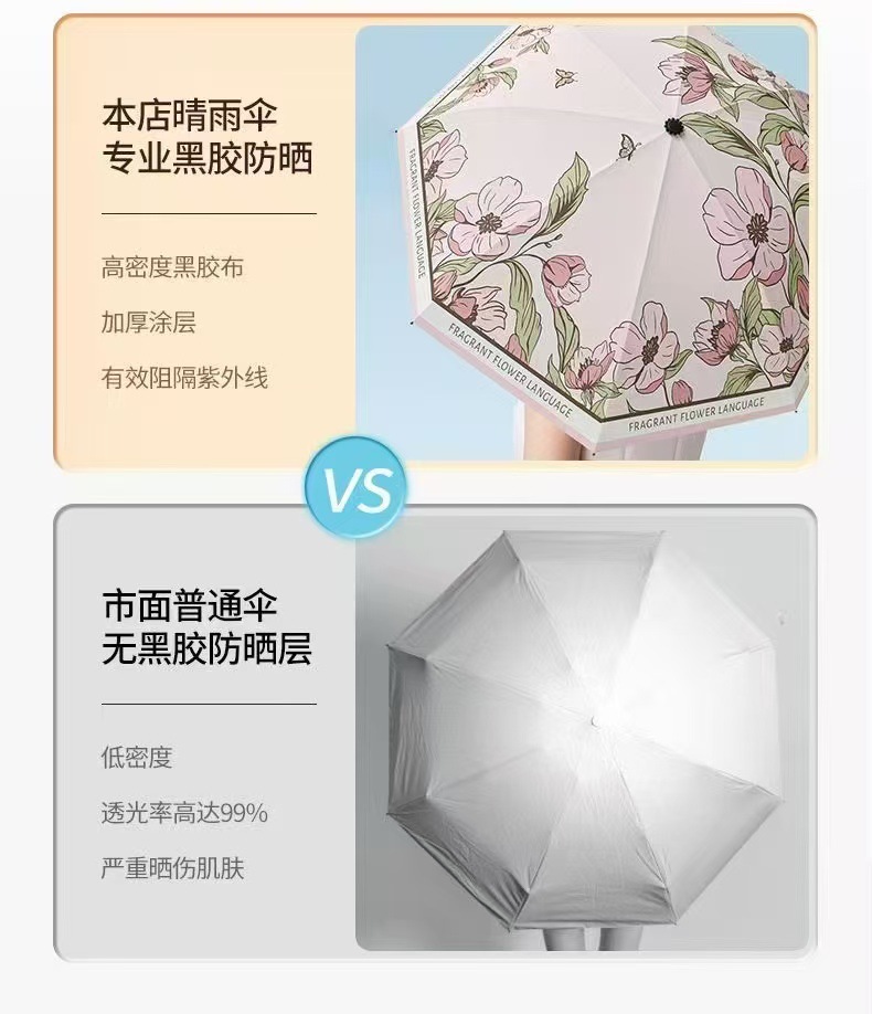 재고 있음 70% off 8단 꽃무늬 수동 우산 블랙코팅 자외선 차단 방수 휴대용 접이식 양산 겸용 우산 도매