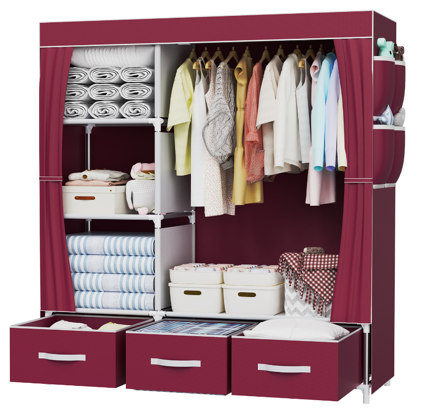 가정용 침실 및 기숙사용 간이 옷장, 천 옷장, 튼튼하고 내구성이 뛰어난 임대 주택, 경제적인 방진 보관 옷 걸이