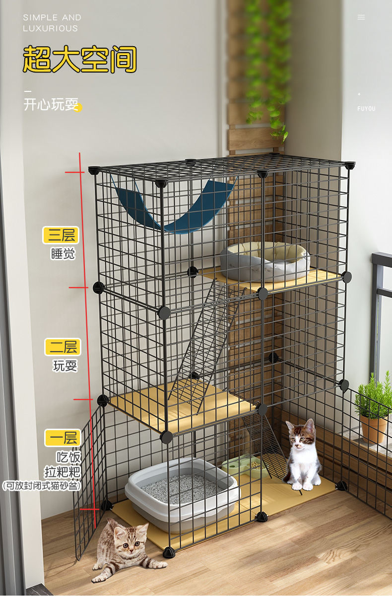 고양이 케이지 고양이 빌라 클리어런스 케이지 홈 실내 초대형 프리 스페이스 실내 화장실 일체형 특가 3층