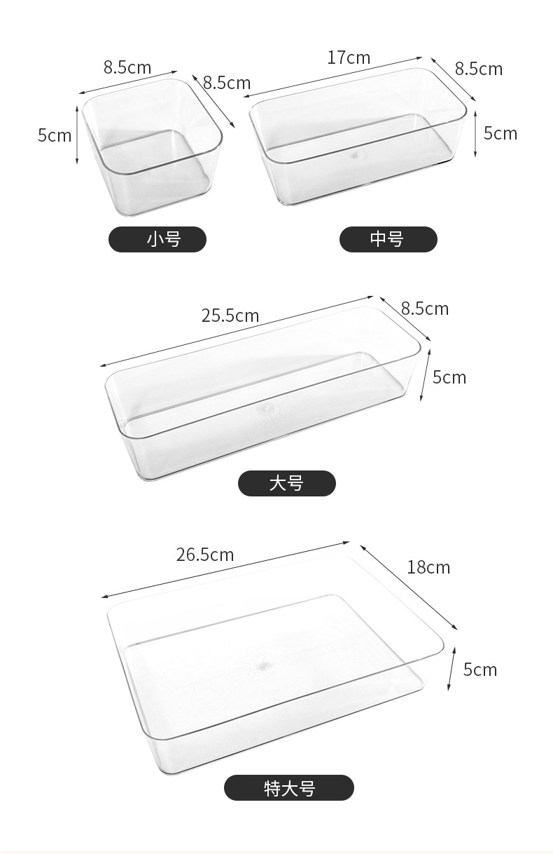 尺寸:小号:8.5*8.5*5 中号:17*8.5*5 大号:25.5*8.5*5 特大号:26*17.5*5