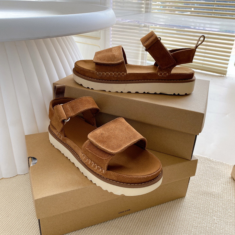 대외 무역 새로운 골드 스타 샌들 여자 탑 레이어 카우밴드 벨크로 플랫 샌들 유행 와이드 벨트 올 매치 캐주얼스토어 가기