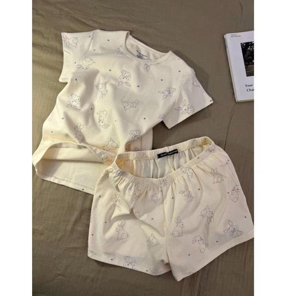 여름 2025 새로운 슬링 반바지 여성 달콤한 활 레이스 홈 의류 세트 공장