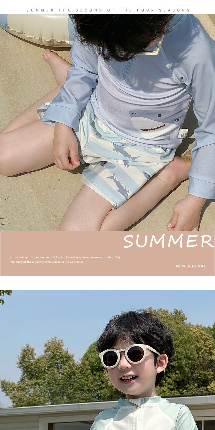 아기 수영복 소년의 긴팔 쪼개진 중소형 어린이 선 스크린 빠른 건조 비치 보이 상어 온천 수영복 세트