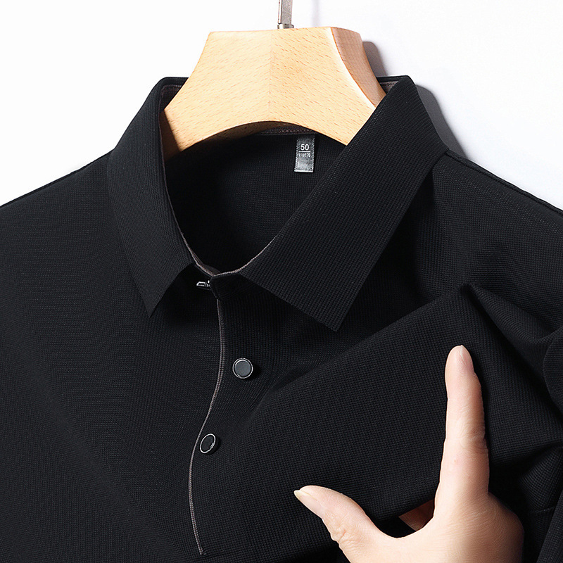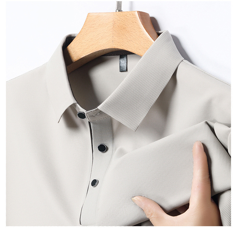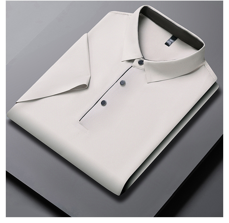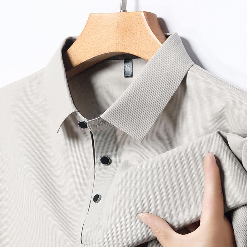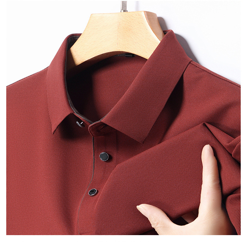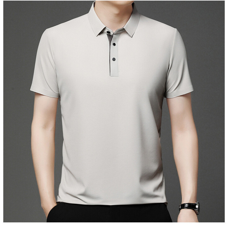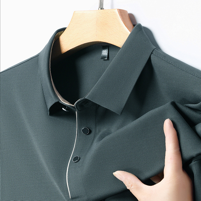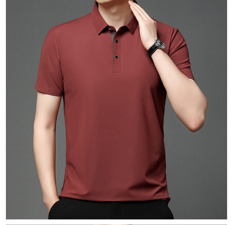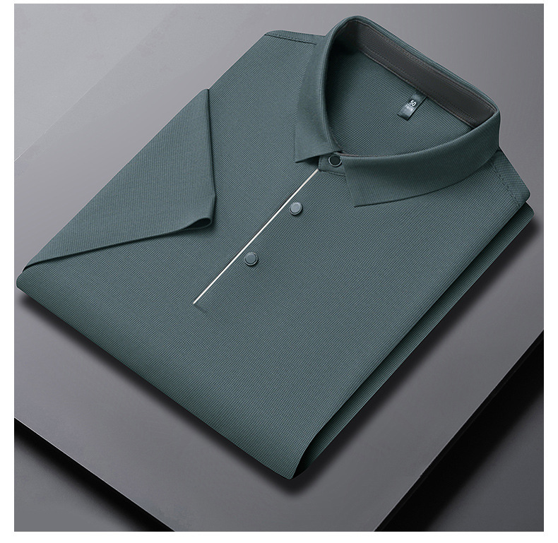 2024 새로운 여름 스타일 옷깃 반팔 남성 폴로 셔츠 캐주얼 중년 얇은 통기성 얼음 실크 티셔츠 남성용스토어 가기