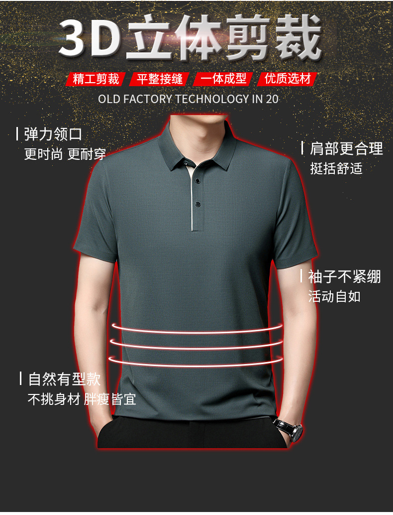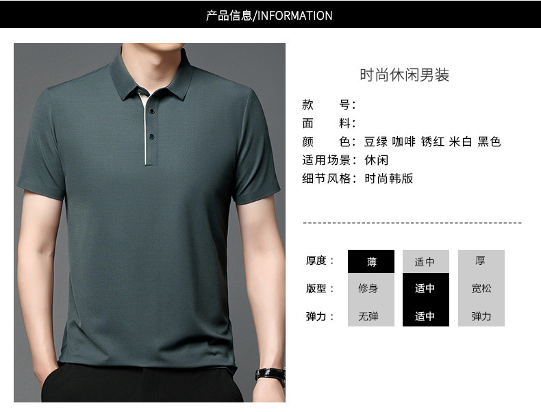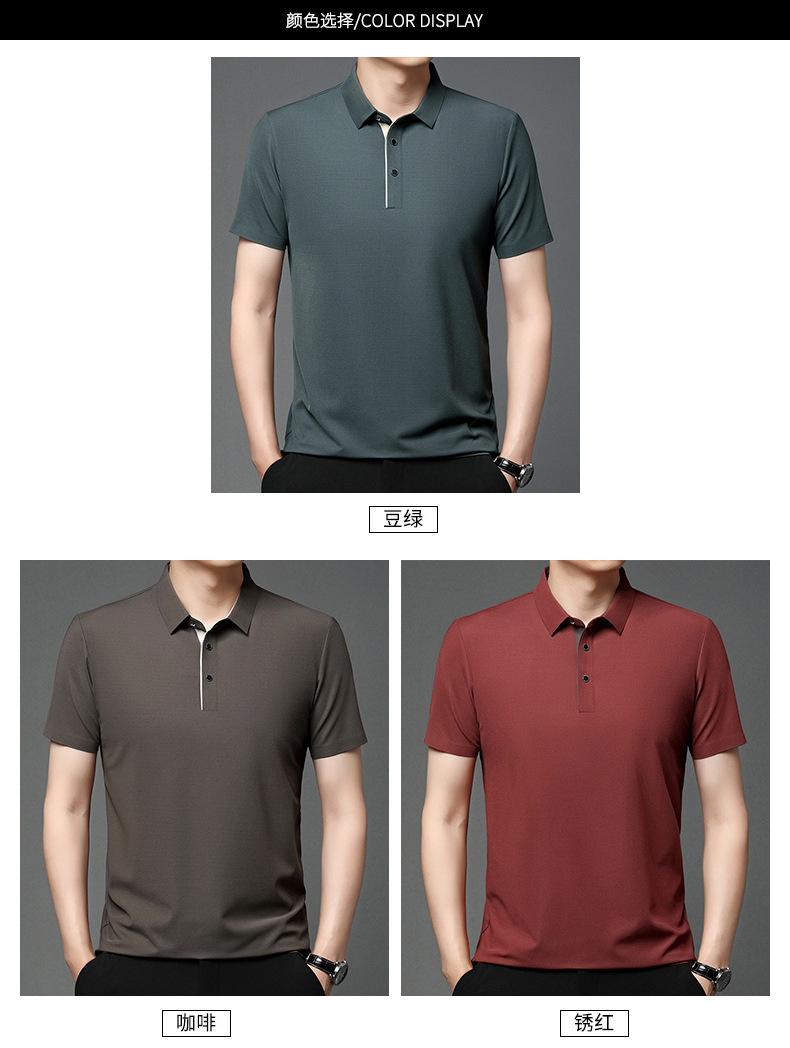 2024年夏季新款翻领短袖男polo衫休闲中年薄款透气冰丝t恤男代发