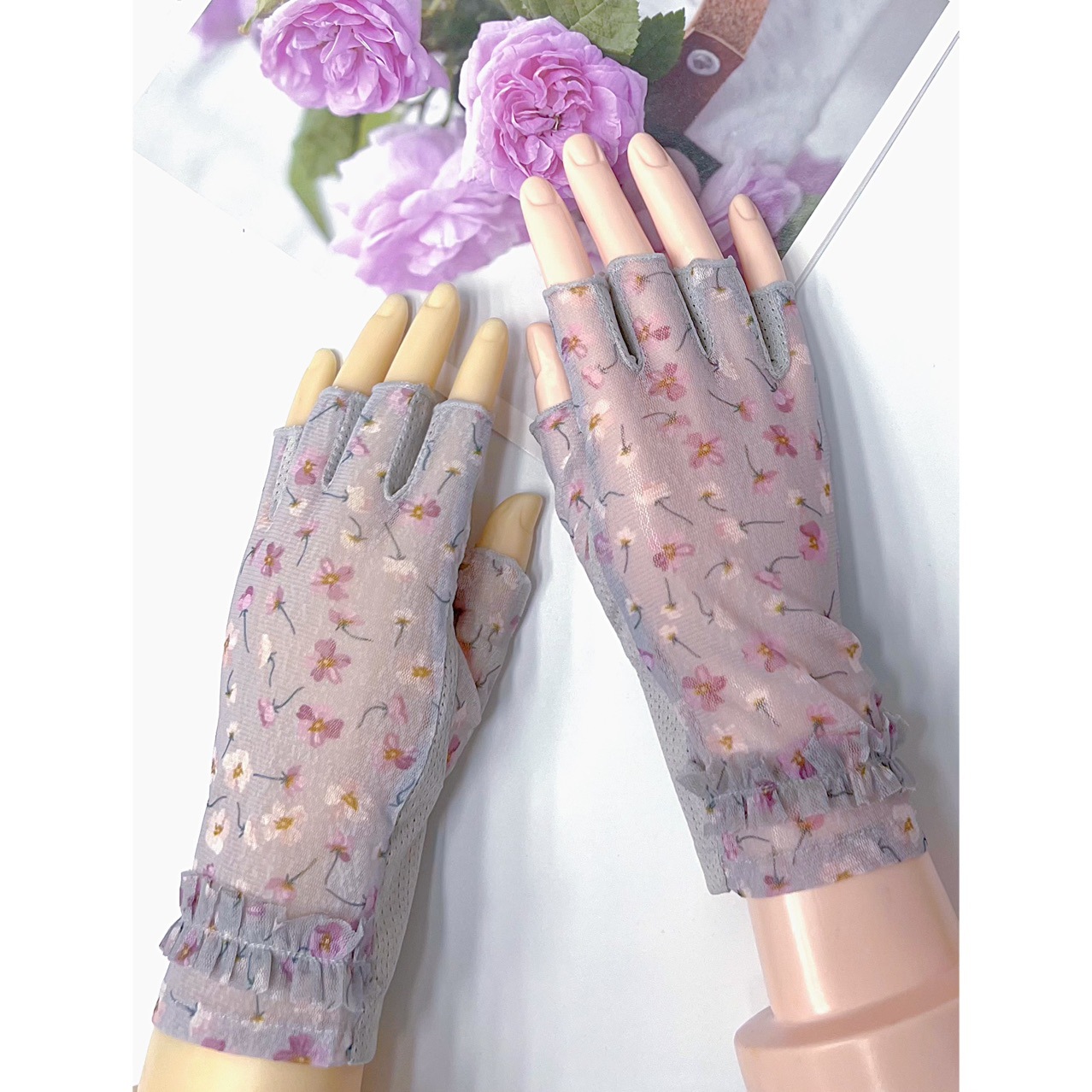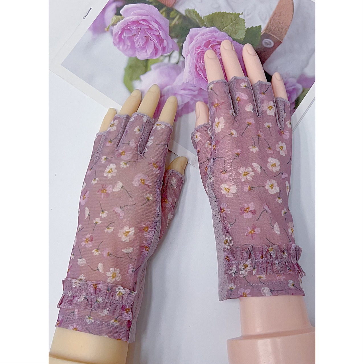 • 보라색 꽃무늬 반손가락 레이스 장갑