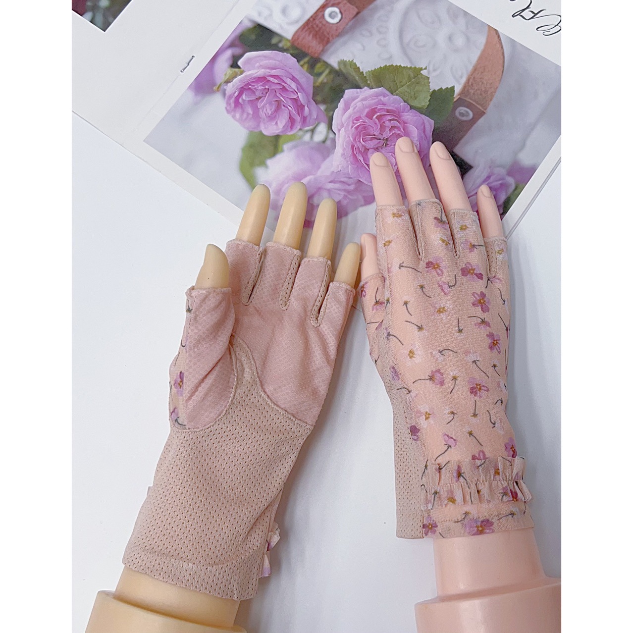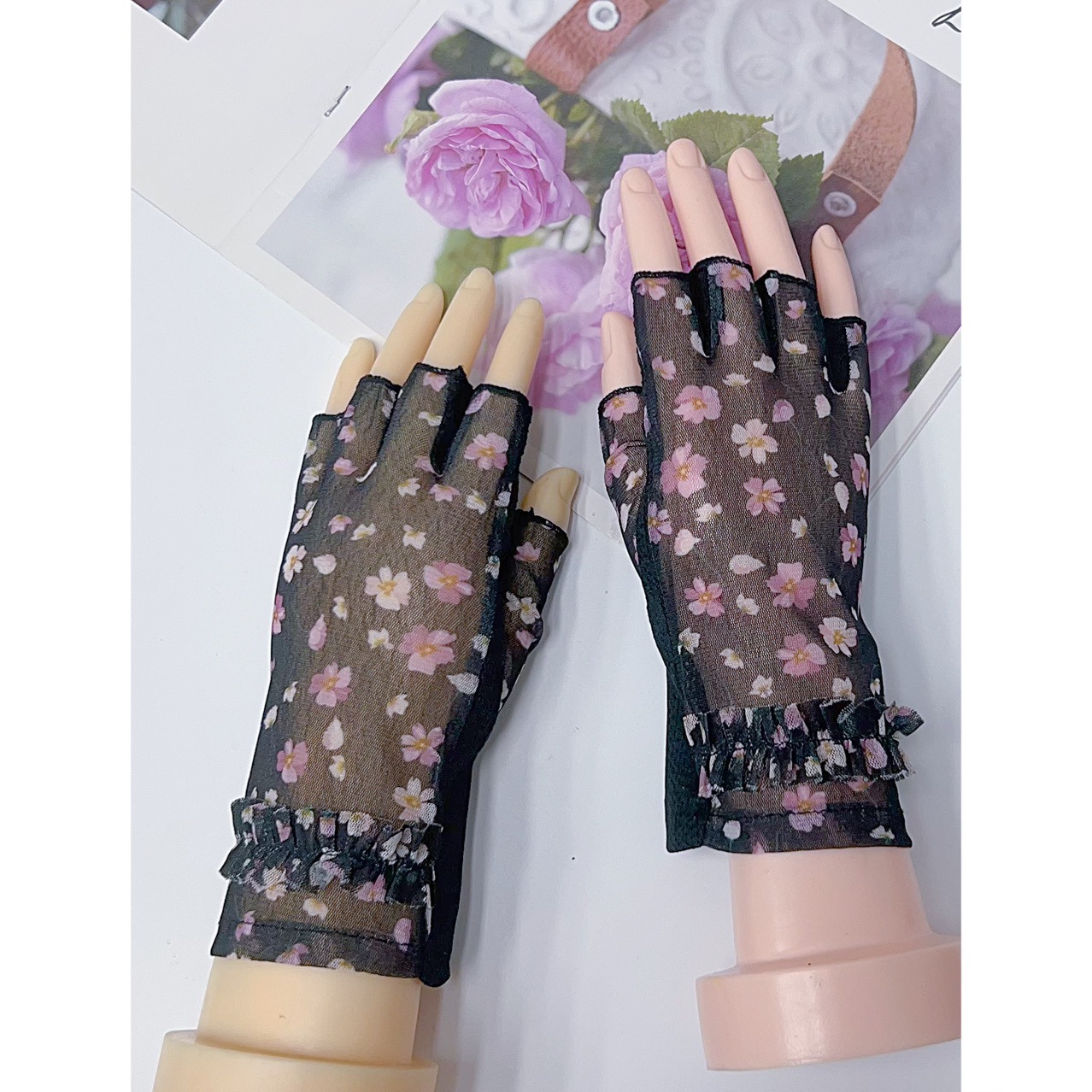 수출 한국 하프 핑거 장갑 여성 얇은 아이스 실크 탄성 레이스 운전 태양 보호 타기 미끄럼 통기성 네일 아트스토어 가기