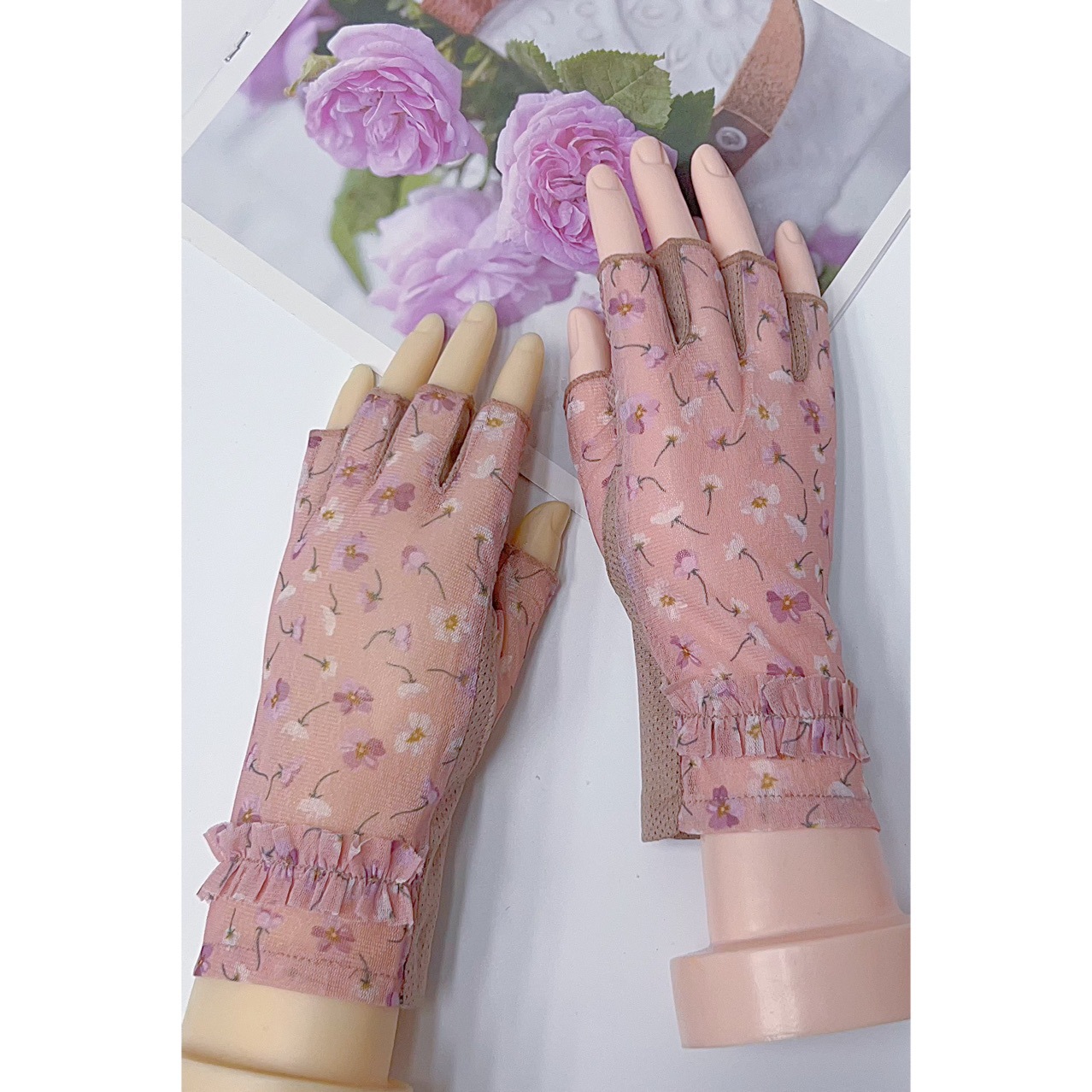 • 핑크색 꽃무늬 반손가락 레이스 장갑