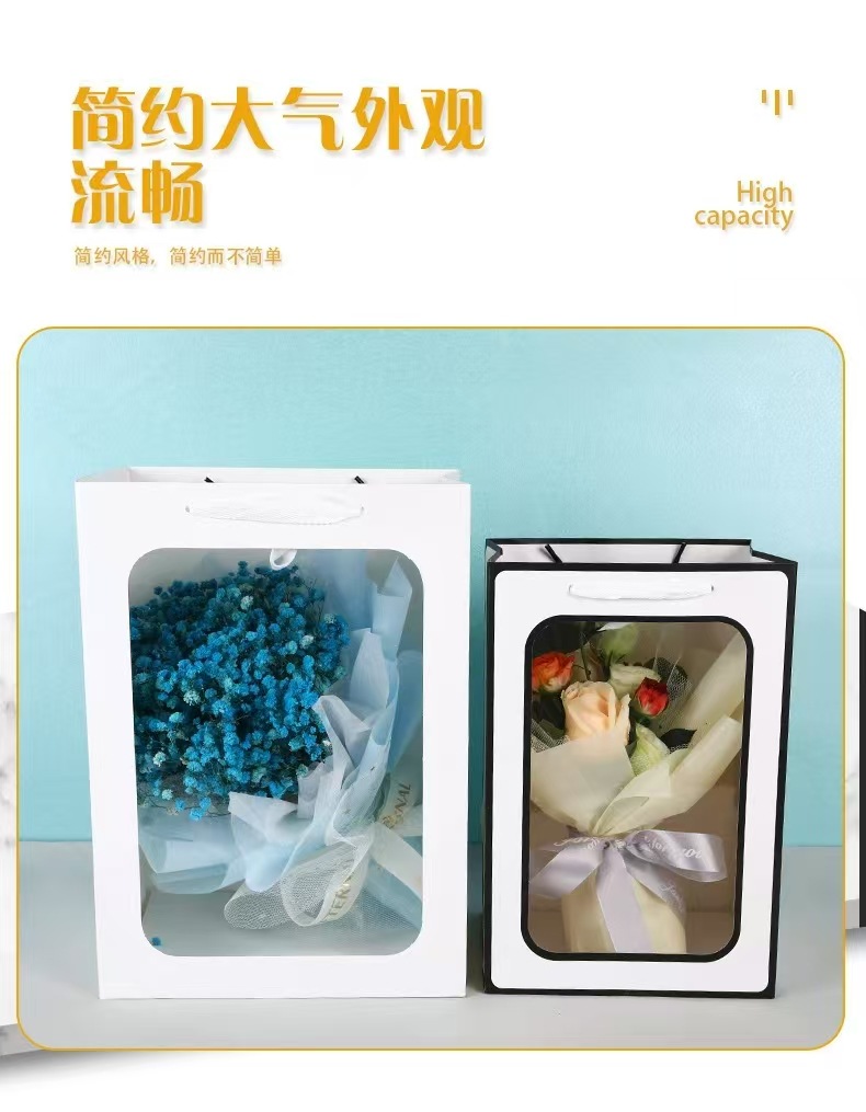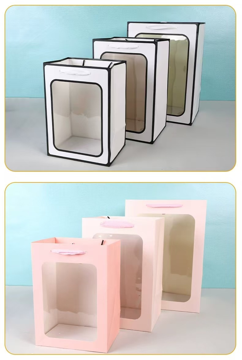도매 두꺼운 투명 선물 가방, 고급스러운 손잡이 가방, 새해 선물 포장 가방, 종이 가방, 기념품