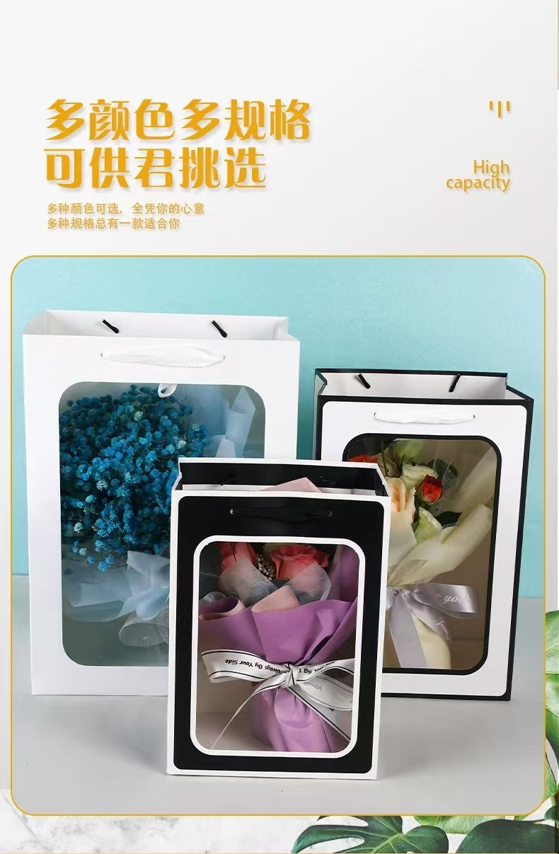 도매 두꺼운 투명 선물 가방, 고급스러운 손잡이 가방, 새해 선물 포장 가방, 종이 가방, 기념품스토어 가기