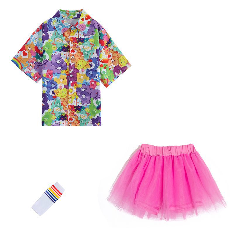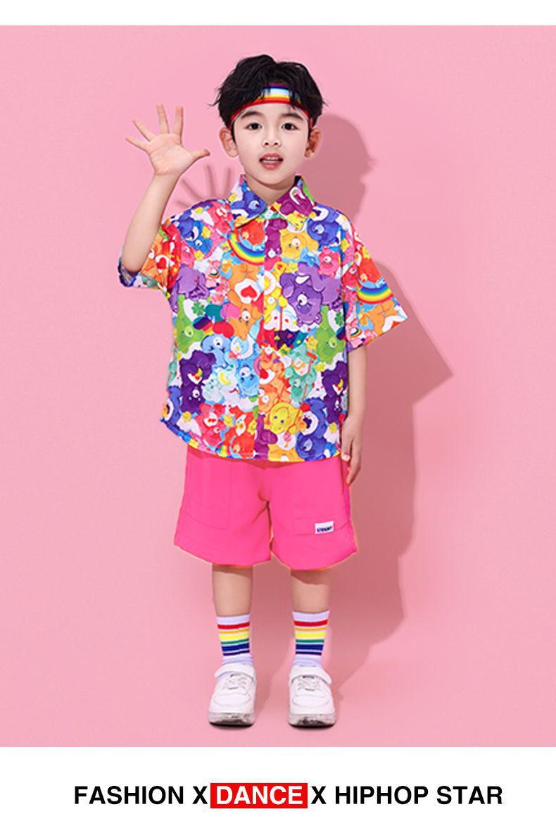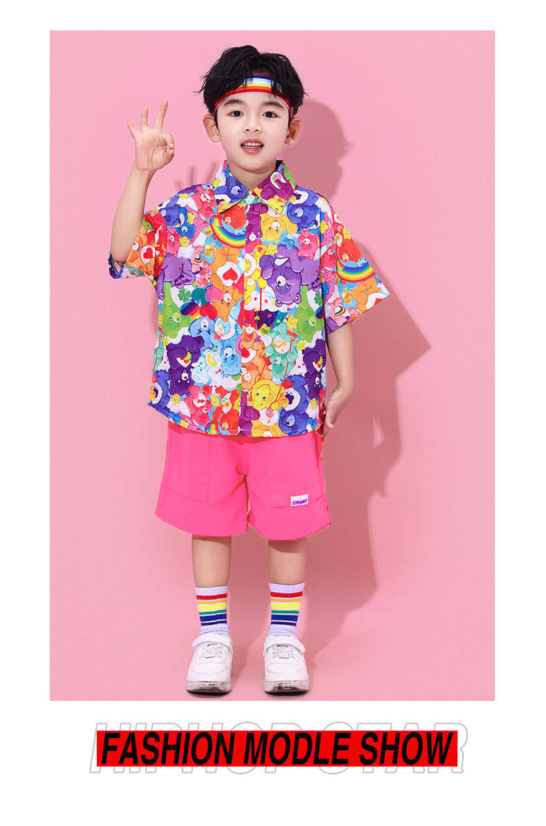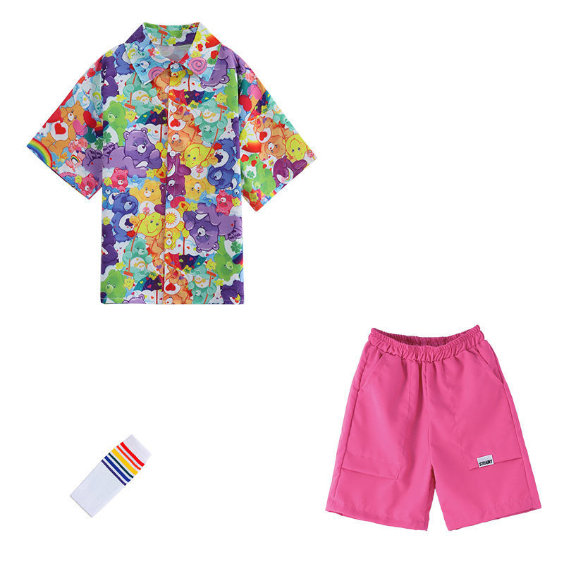• 곰 상의 + 핑크색 반바지 + 무지개 양말, 무료 머리띠