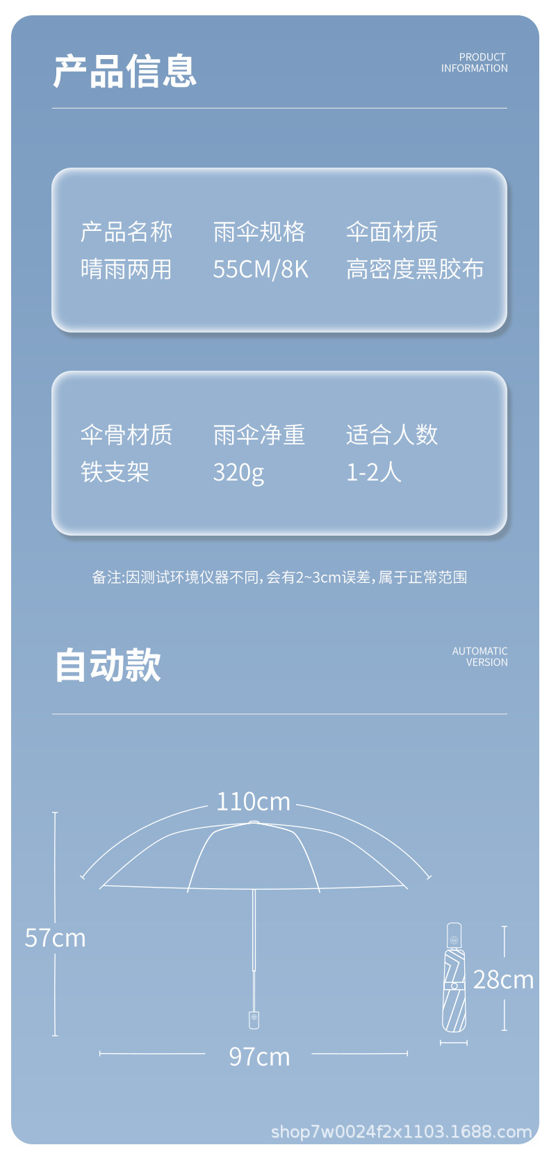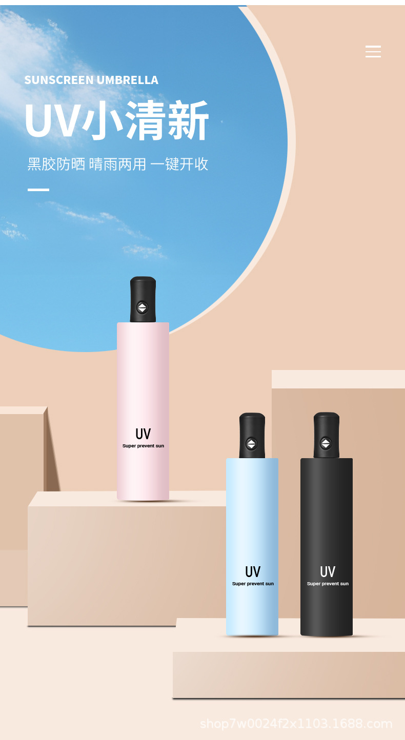 • 하늘색 자동 UV 우산