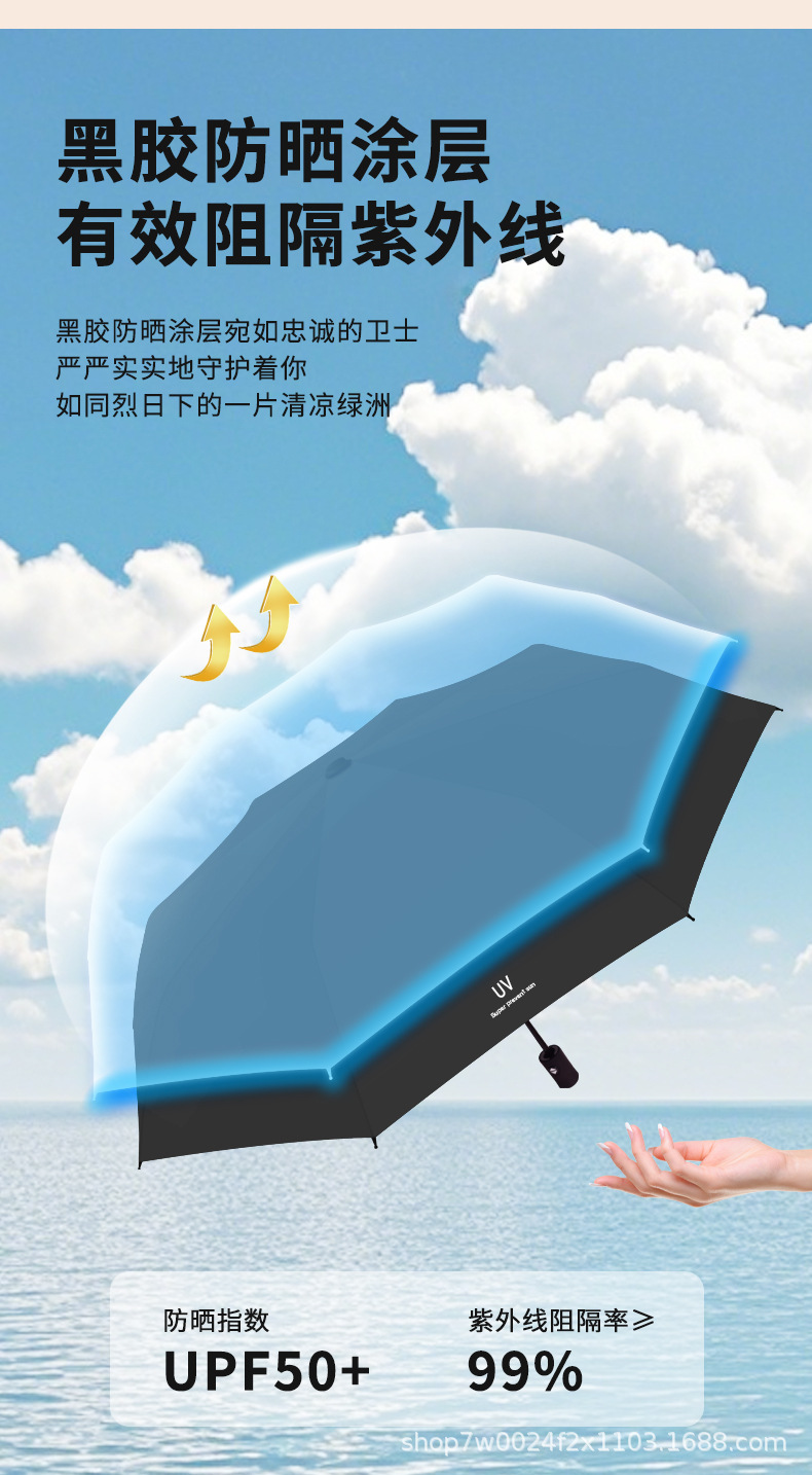 • 네이비 블루 자동 UV 써니 우산