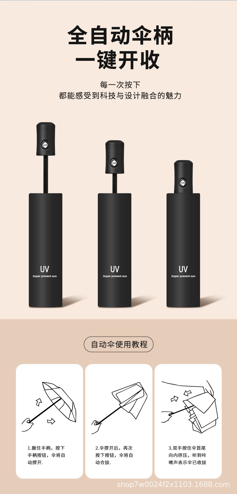 • 미색 자동 UV 우산