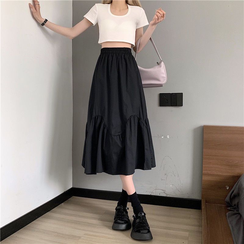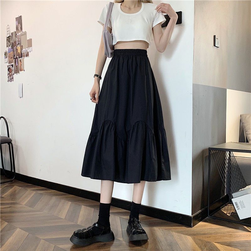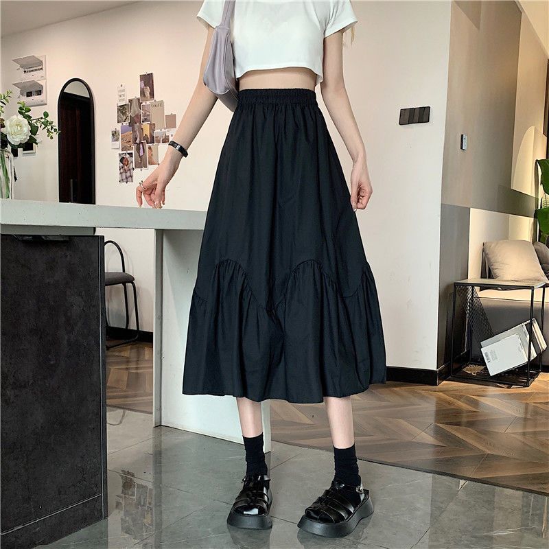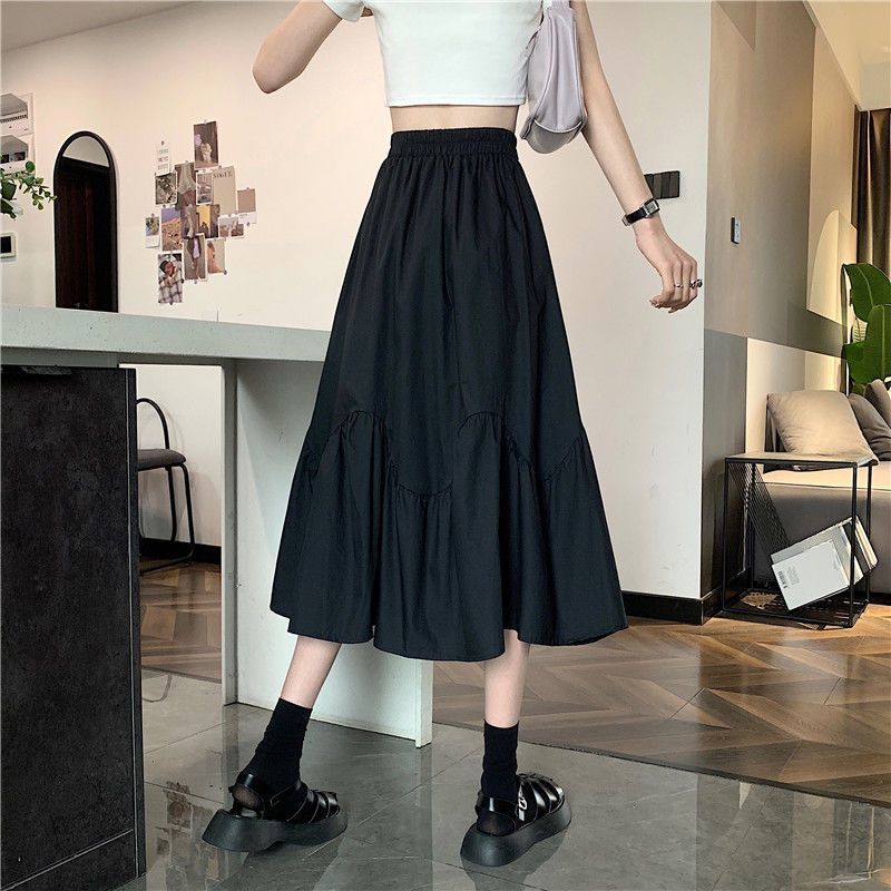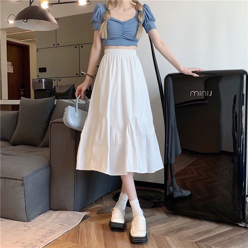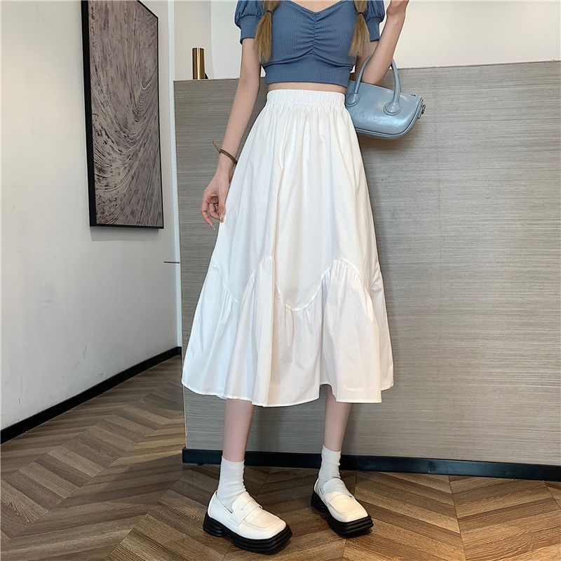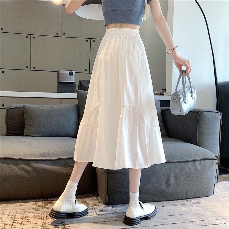 2023년 여름 새로운 스타일의 하이웨이스트 루즈 슬리밍 우산 스커트 퓨어 러블리 스타일 스커트 여성용 화이트 A라인 중간 길이 스커트스토어 가기