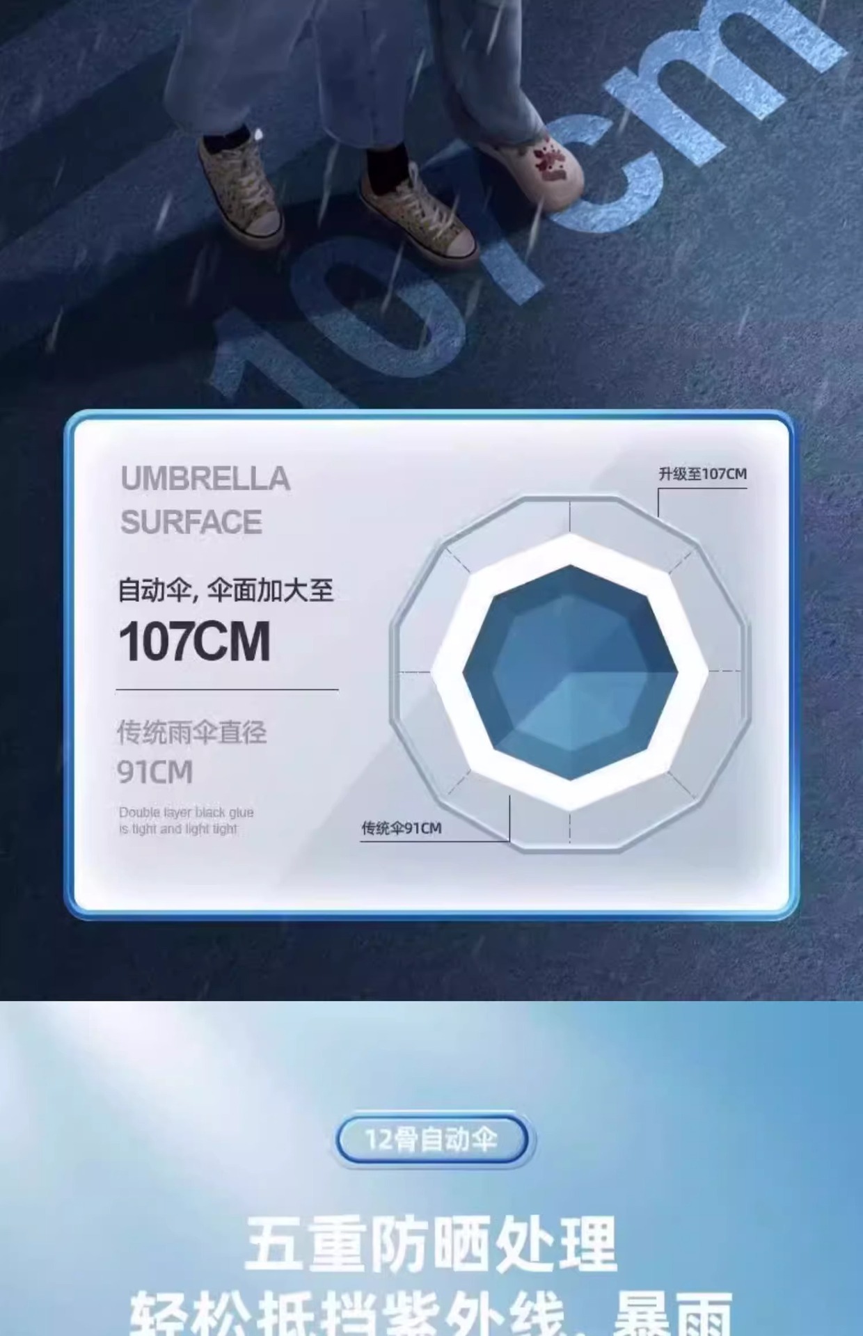 여성용 24본 접이식 전자동 우산, 비가 오나 눈이 오나, 햇빛 차단 및 태양 우산, 강함스토어 가기