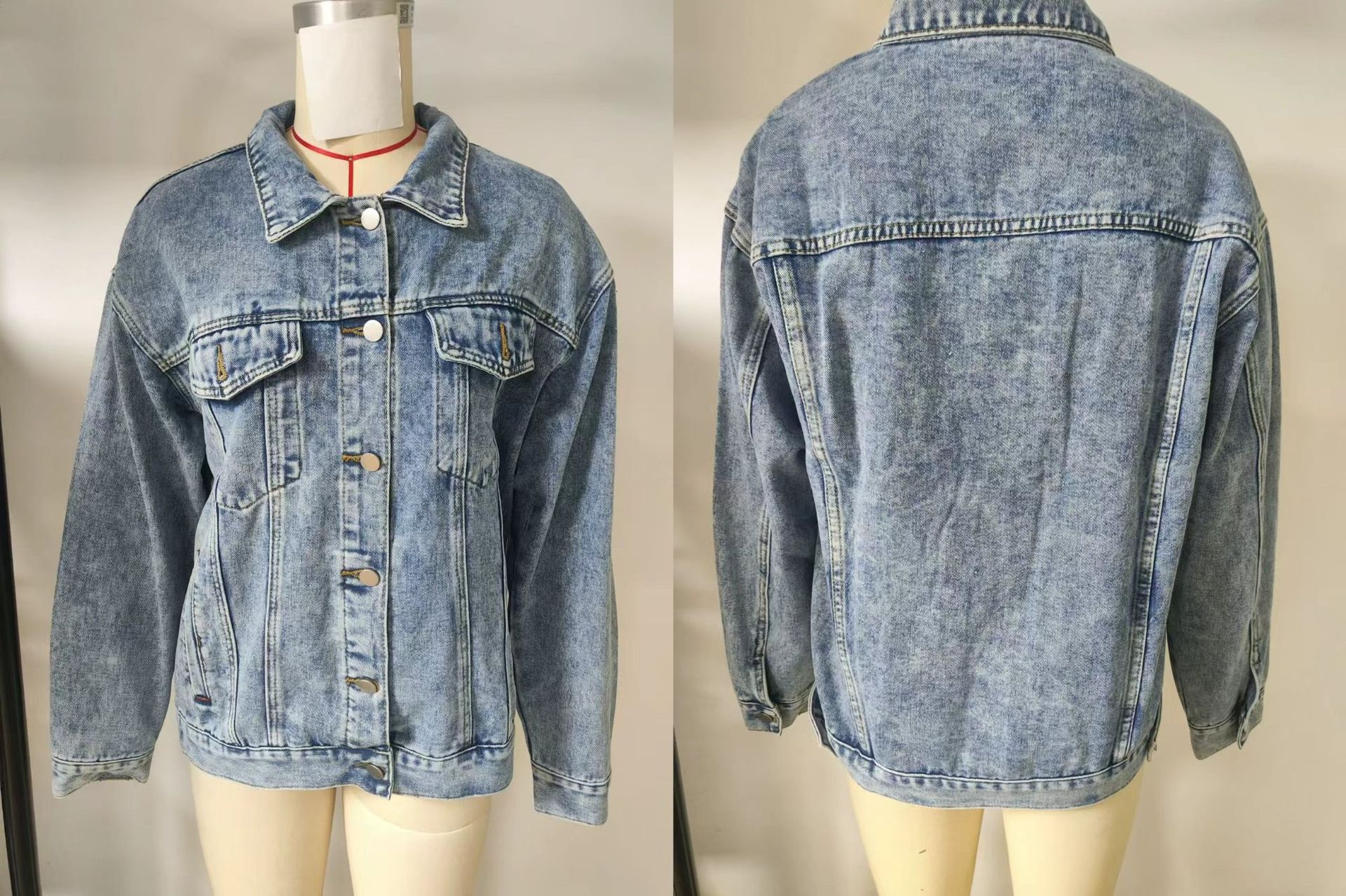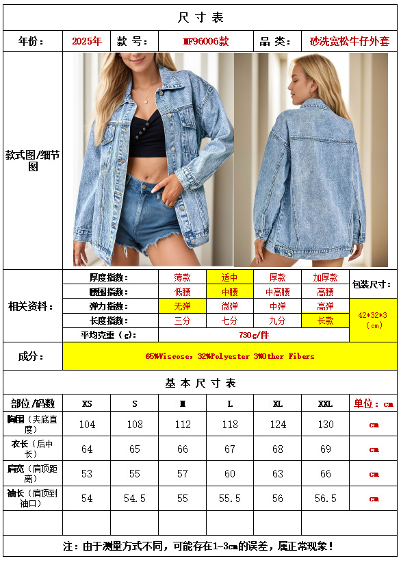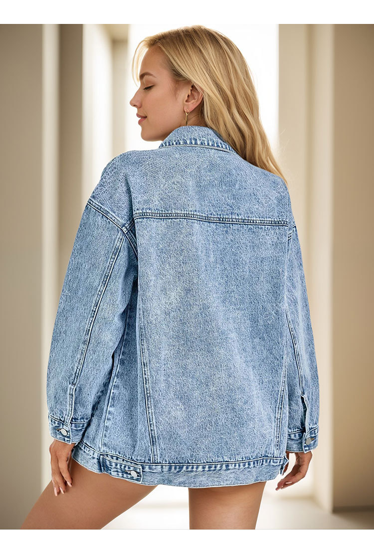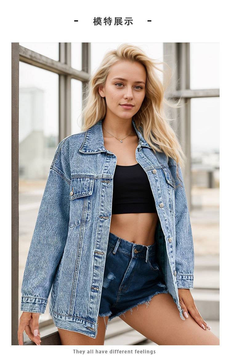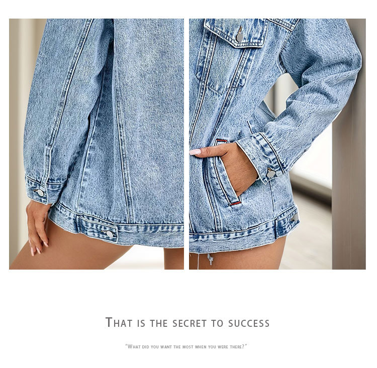 2025 크로스보더 데님 재킷 여성 봄, 가을 하이 스트리트 아메리칸 겨울 중간 길이 재킷 탑 루즈하고 다재다능함스토어 가기